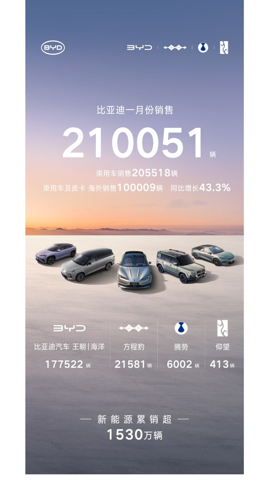 2026开年,新能源汽车销量出现国内遇冷,国外暴涨的新局面!这和购置税是息息相关的。 纵观1月新能源销量排行榜,不难发现,比亚迪仍稳居榜首,其中出口10w+,形成出口大爆发的局面。而吉利首次反超特斯拉,拿下第二! 国内受购置税的影响,大家都在观望,非刚需用户选择“再等等”,市场驱动敌不过政策驱动