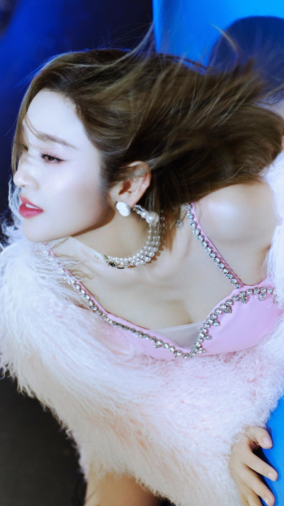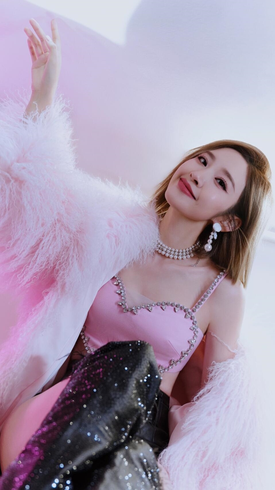 唐艺昕“辣妹”穿搭:粉色抹胸小皮短裤,身材杠杠的。唐艺昕