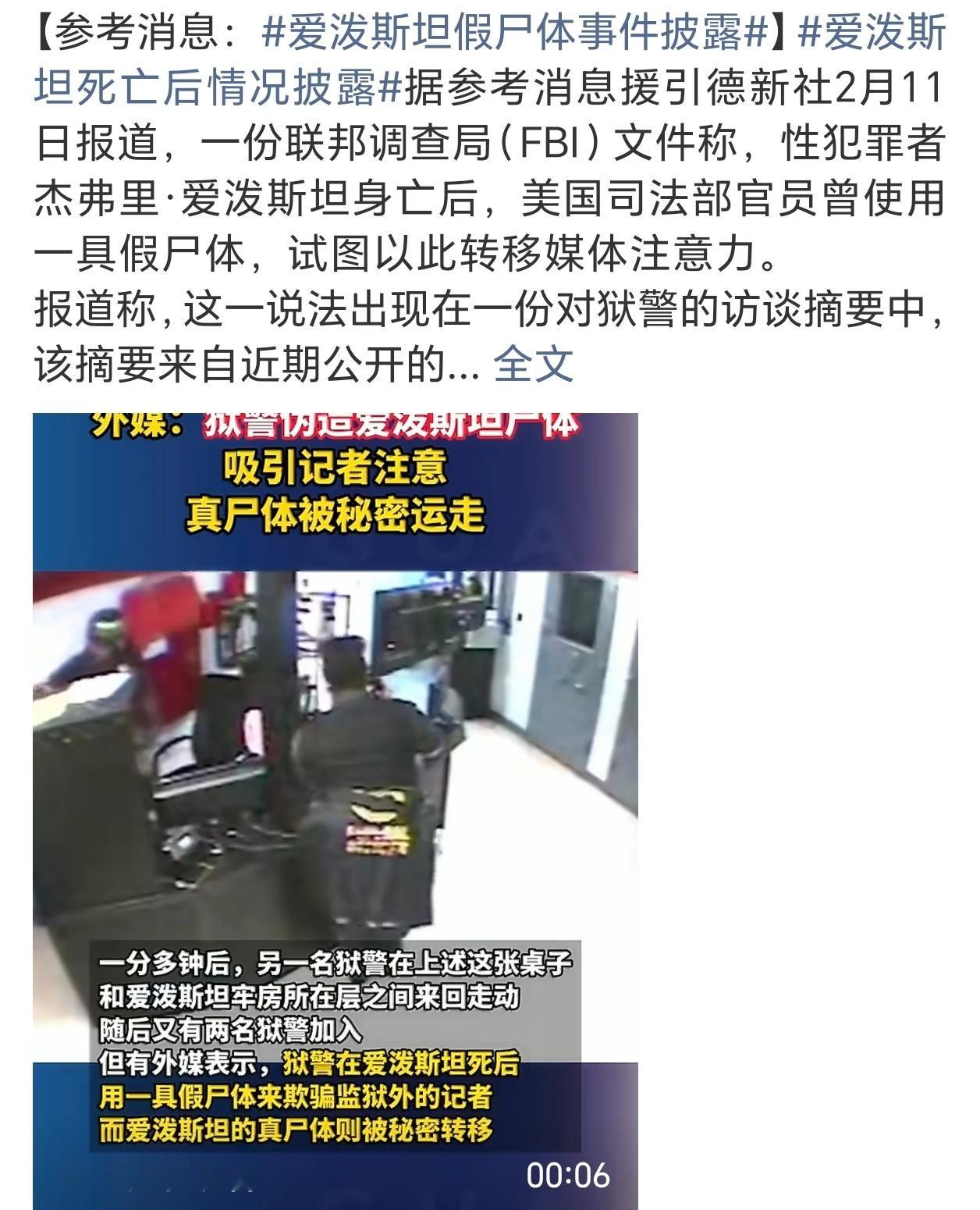爱泼斯坦假尸体事件披露越挖越深,所以这背后铁定有更多未知及未公布事项,所以还需要继续深挖!
