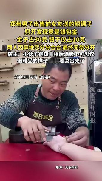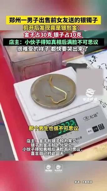 河南郑州一男子到首饰店变卖前女友送的银镯,店员剪开验货后意外发现是银包金。手镯总重40克,内含30克足金,仅外层10克为银。男子得知真相后震惊又心酸,两人因异地恋分手,他一直以为只是普通银饰。意外之财背后,是被低估的深情,男子当场红了眼眶,令人唏嘘。手镯金 金店手镯