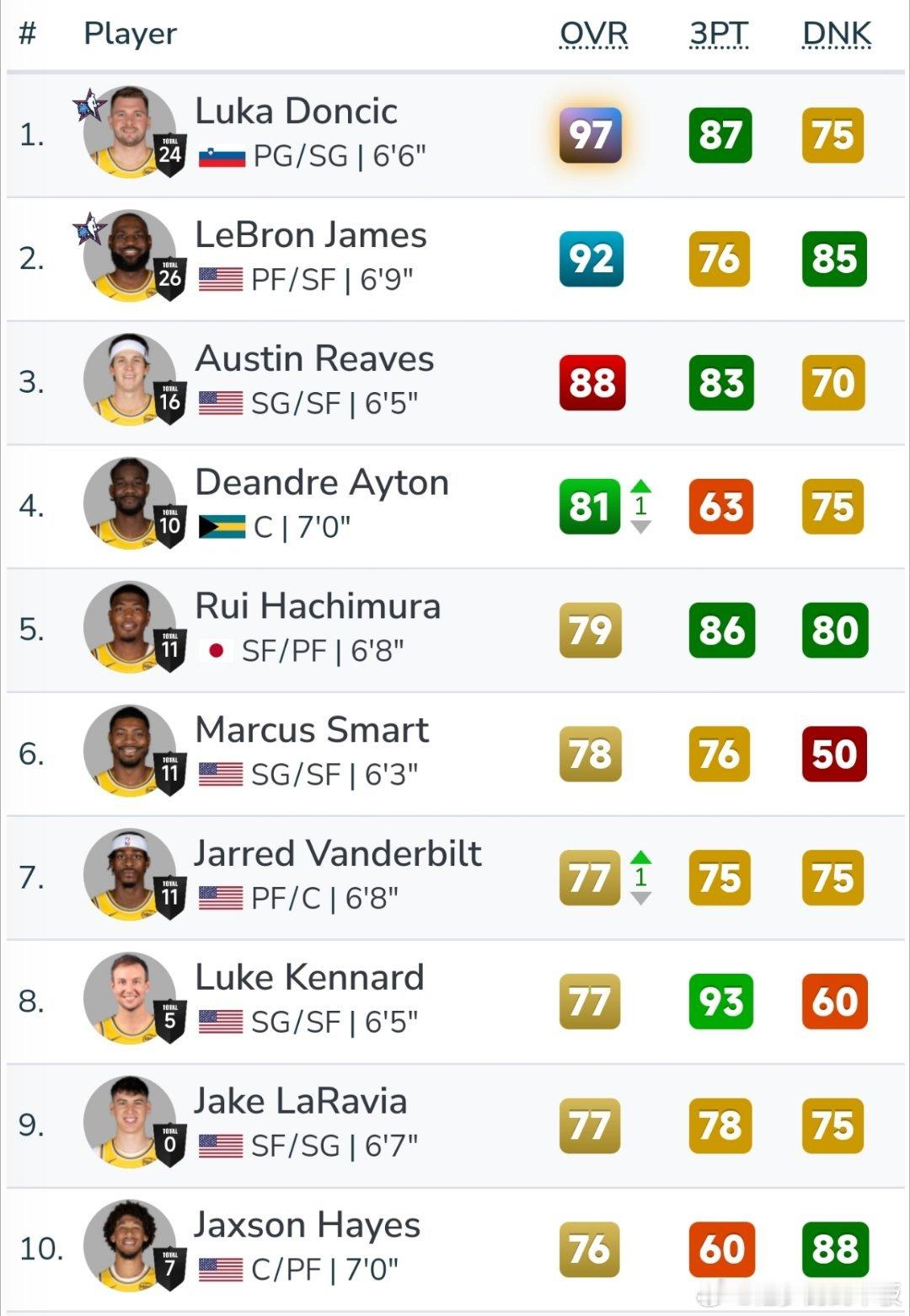 湖人此次共有2名球员能力值上升: 艾顿80⬆️81,范德比尔特76 ⬆️77。