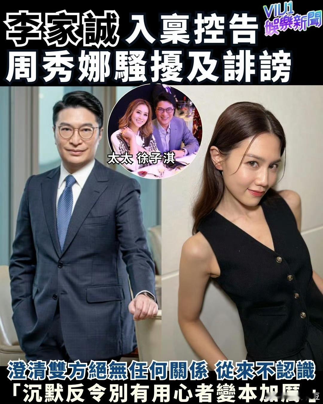 李家诚告周秀娜诽谤及骚扰徐子淇老公李家诚起诉周秀娜诽谤和骚扰,看了周秀娜的视频里面对记者的访问,她否认跟李家诚认识。但是李家诚这边的意思就是周秀娜故意安排媒体问自己这个事情用来炒作,尤其是他们认为在自己父亲李兆基去世期间。这让我想到那个一直被拒绝的张艺谋,拒绝名人大咖,或者否认与他们有特殊关系,都是抬咖的一种好方法。