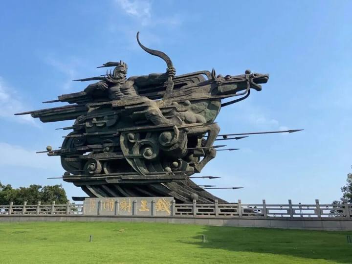 “钱王射潮”雕塑(图源:杭州文广旅游发布)