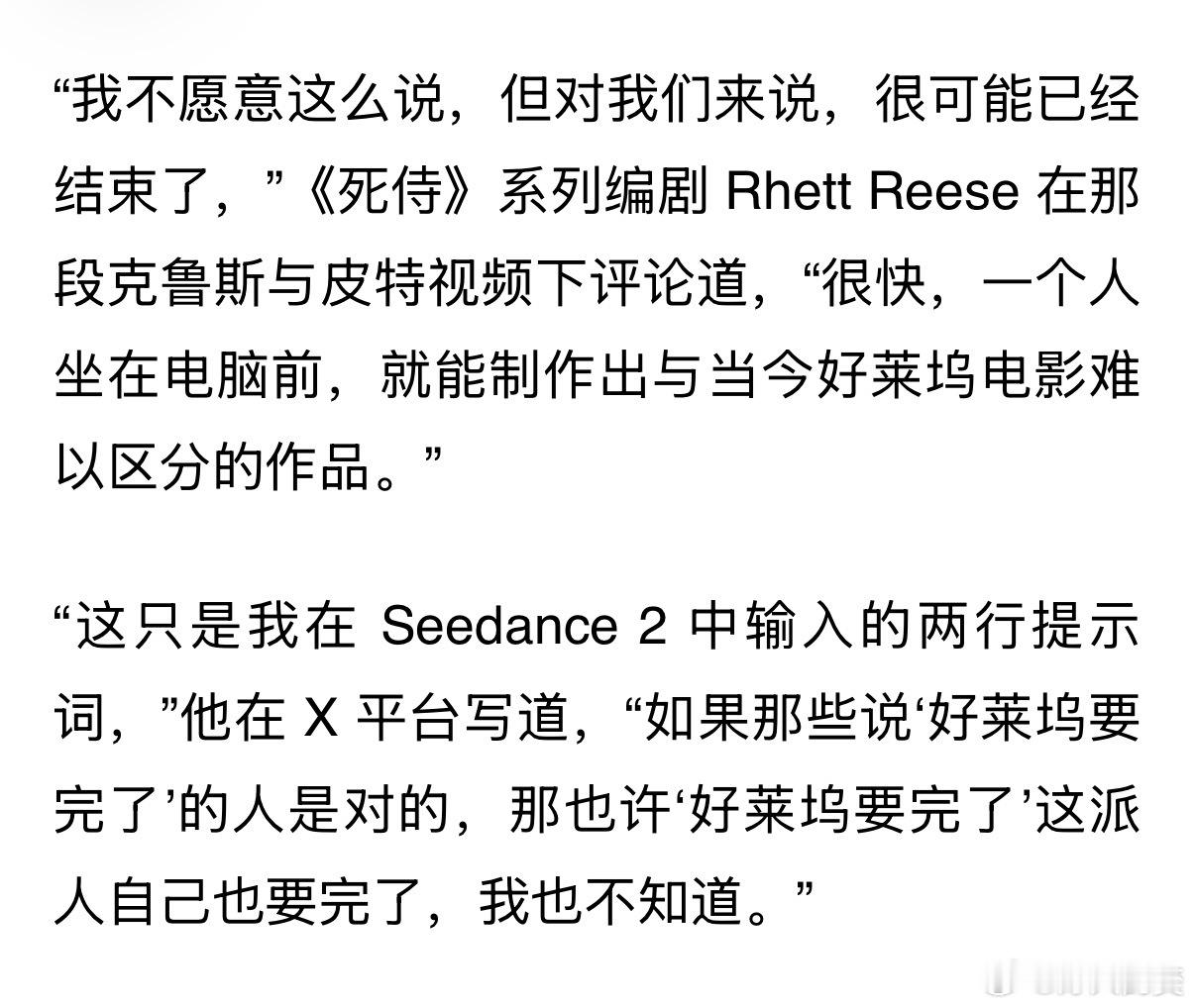 真正该绝望的不是「好莱坞要完了」,而是「这么好的工具,居然是中国人做的。」如果这是美国公司的产品,此刻应该在谈新一轮融资,而不是被协会发警告函。