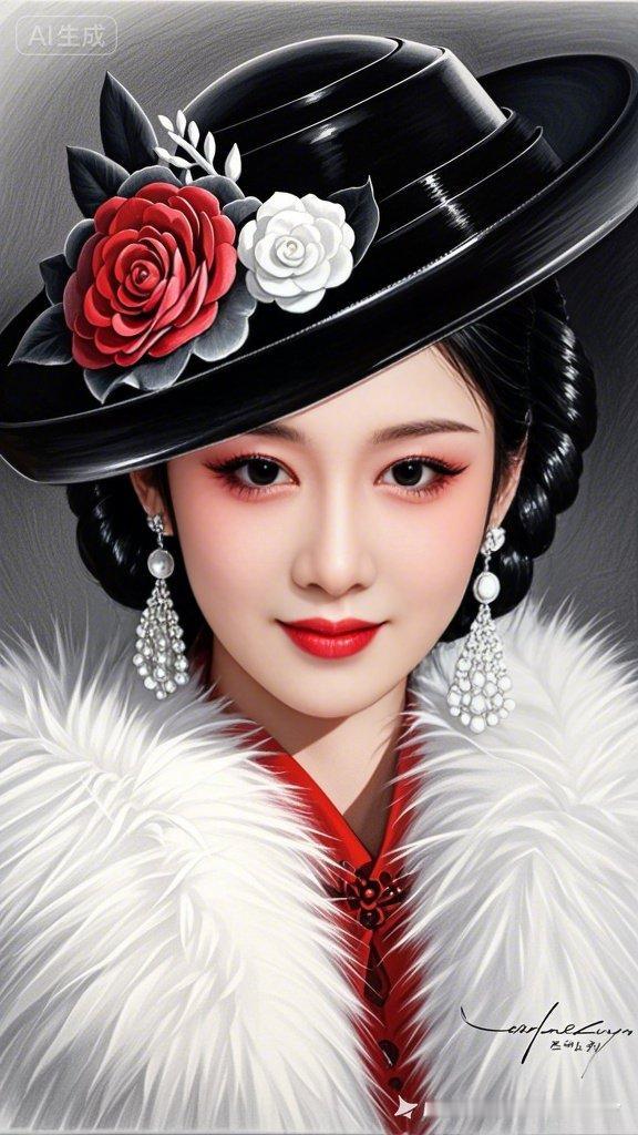 复古优雅,红玫瑰与黑帽的完美搭配,尽显东方古典美!