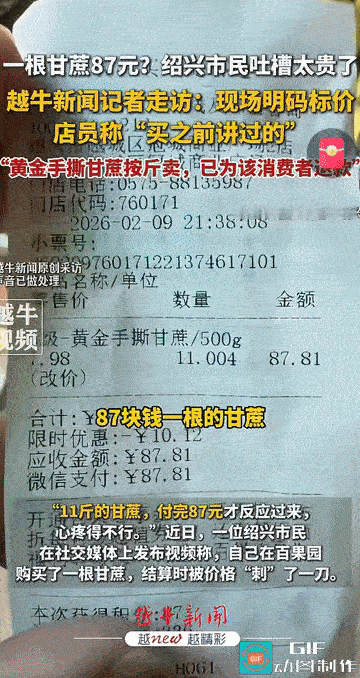 “这就是‘甘蔗刺客’吗?”浙江绍兴,有市民在水果店挑选甘蔗,称重计价后才发现,一根甘蔗竟然要87元。面对这样的“天价”,消费者忍不住吐槽:“这吃的还是甘蔗吗?” 来源:【越牛新闻】 记者走访发现,87元一根的甘蔗并非孤例。在绍兴多家水果店,青皮甘蔗的价格普遍在20多元到30多元一根,品质好的甚至更高 。虽然春节前夕因物流、人工成本上涨及节日效应,水果价格通常会有季节性上浮,但涨到近百元一根,还是远远超出了人们的心理预期! 商家或许也有苦衷:进价高了、损耗大了、过年人工贵了。但在消费者看来,这种“被动接受”的高价,难免有趁节“打劫”之嫌! 一根甘蔗,既不是奢侈品的稀缺性,也没有高科技的附加值,当它的价格标签逼近一桶油、一袋米时,难免让人心里不是滋味! 其实,理性分析,87元的甘蔗未必真的“买不起”。在春节这个特殊节点,很多人舍得花几百元买一张电影票,也舍得为年夜饭一掷千金。大家真正反感的,是那种“被算计”的感觉! 当你拿起甘蔗时,它静静地躺在那里,没有价格标签的醒目提示,直到称完、削好皮、切成段,木已成舟。这时候,你是要面子还是里子?大多数人的选择是,咬着牙扫码付款,然后把这份不愉快咽进肚子里,发个朋友圈吐槽! 这种消费体验,本质上与当年的“雪糕刺客”如出一辙。它们利用的正是消费者在结账那一刻的“羞耻感”和“不便拒绝”。一根小小的甘蔗,折射出的却是消费环境里尚存的“盲区”:明码标价是否真正落到了实处?商家的定价权,是否失去了对市场承受力的敬畏? 甘蔗本该是春节里最朴实的甜蜜。在南方,家家户户过年买甘蔗,寓意“从年头甜到年尾,步步高升节节高”! 但如果这根甜蜜的载体,变成了一种负担,变成了让人如鲠在喉的“刺客”,那它失去的不仅是市场,更是那份属于传统年味的人情味! 希望明年的春节,甘蔗还是那根清甜多汁的甘蔗,而不是刺痛普通人的那根“刺”! 也希望所有商家明白,只有把消费者当成“自己人”,而不是“一锤子买卖”的过客,生意才能像甘蔗一样,节节高升,甜甜蜜蜜! 毕竟,我们想要的是一个热热闹闹、开开心心的年,不是一个处处提防、步步惊心的“刺客”江湖!