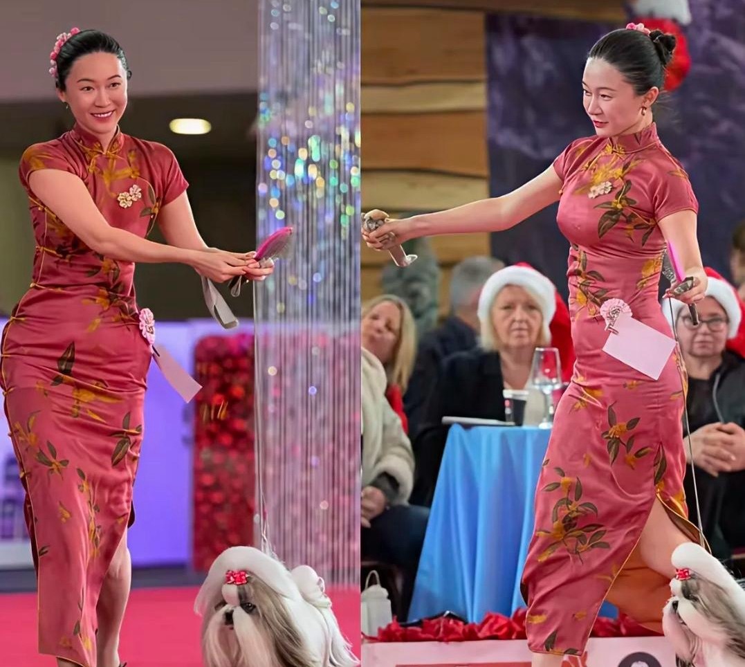 张天爱跟素人合影,胯真的好宽,大宅院似的