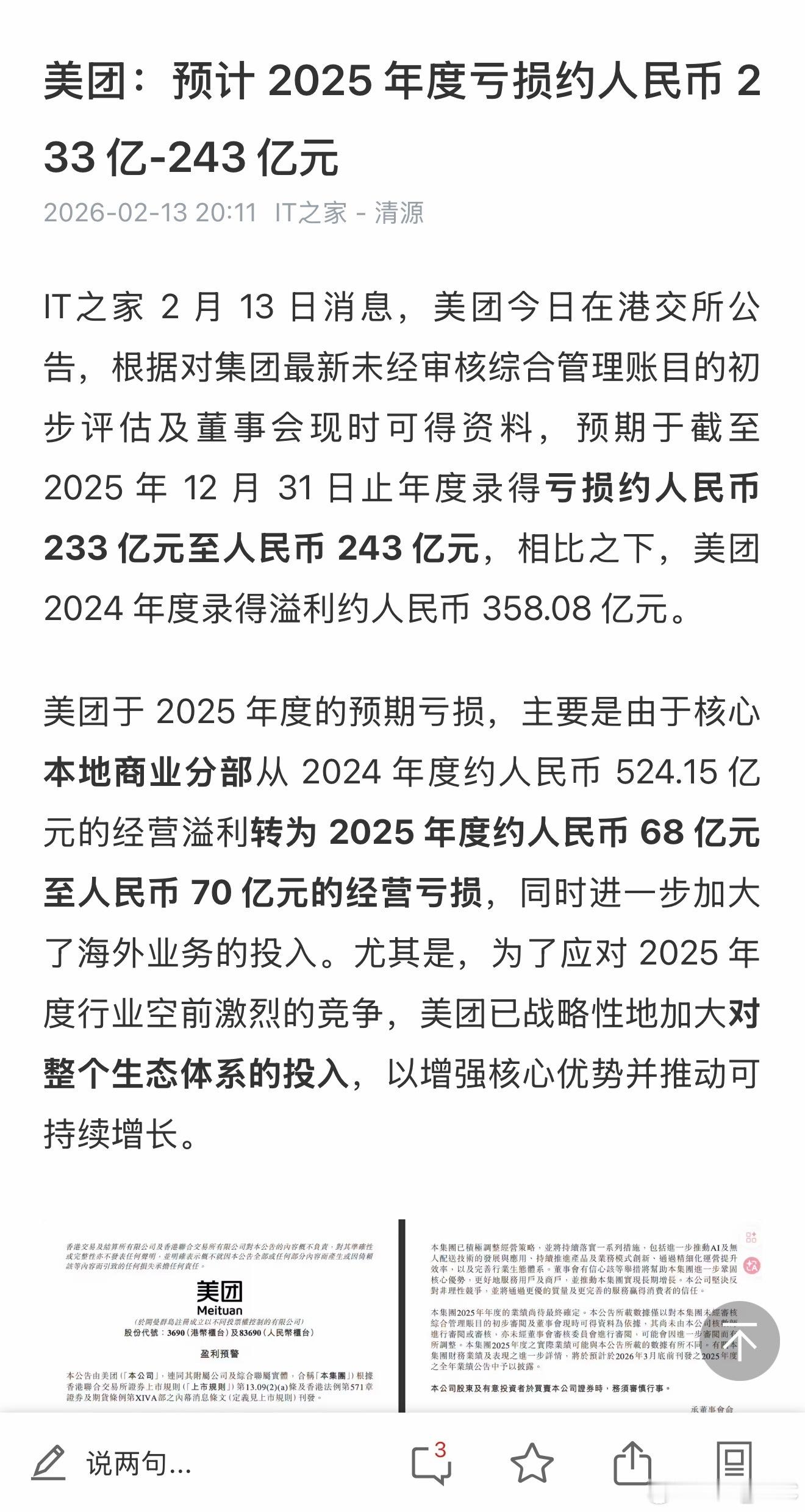 美团去年盈利358.1亿,今年直接干亏损240亿。这么一比的话,汽车还好没这么大起大落,要么一直亏,要么少点赚。