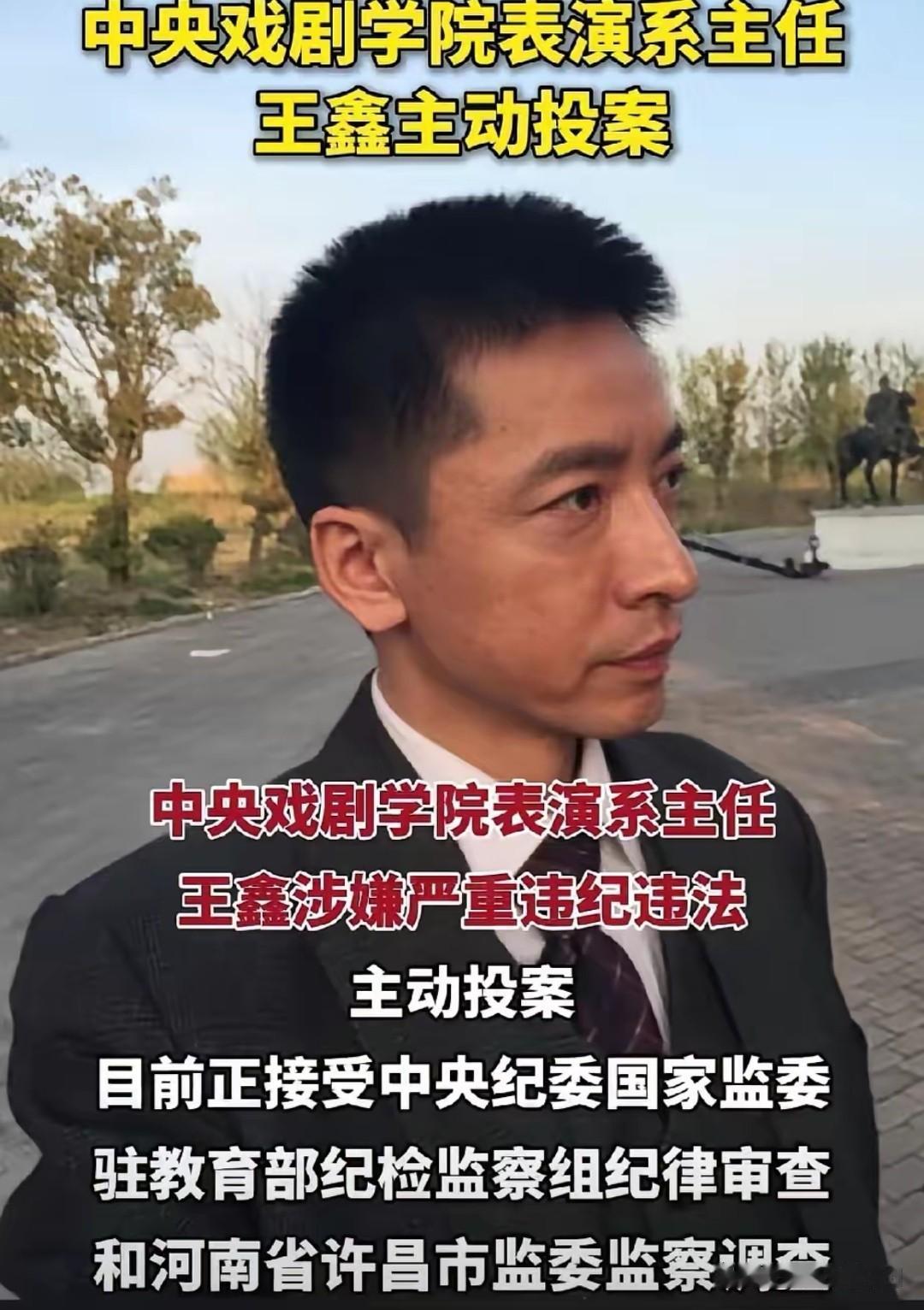 荧幕戏骨涉案 中戏主任王鑫投案 中戏表演系主任王鑫主动投案。 互联网最新消息显示,2026年2月13日上午,王鑫涉嫌严重违纪违法主动投案,接受中央纪委国家监委驻教育部纪检监察组与河南省许昌市监委审查调查。2月12日晚,表演系原主任陈刚同步投案,去年12月院长郝戎已先行主动交代问题。 王鑫是圈内实打实的实力派演员,在谍战剧《风筝》中饰演中统干将田湖,角色对手戏片段成为经典名场面。他还参演《无问西东》《大江大河》《人间正道是沧桑》《城中之城》等多部热剧,荧幕角色辨识度极高。 荧幕上他能精准塑造各类人物,现实里人生轨迹彻底走偏,触碰纪律与法律底线。 年前文艺领域反腐力度持续加码,涉案线索逐一捋明白,王鑫心理扛不住压力,主动投案争取宽大处理。 三起案件关联并查,艺考招录、院系资源管理等环节纳入清查范围,案件后续进展待官方发布。 大伙咋看这件事?评论区聊聊。