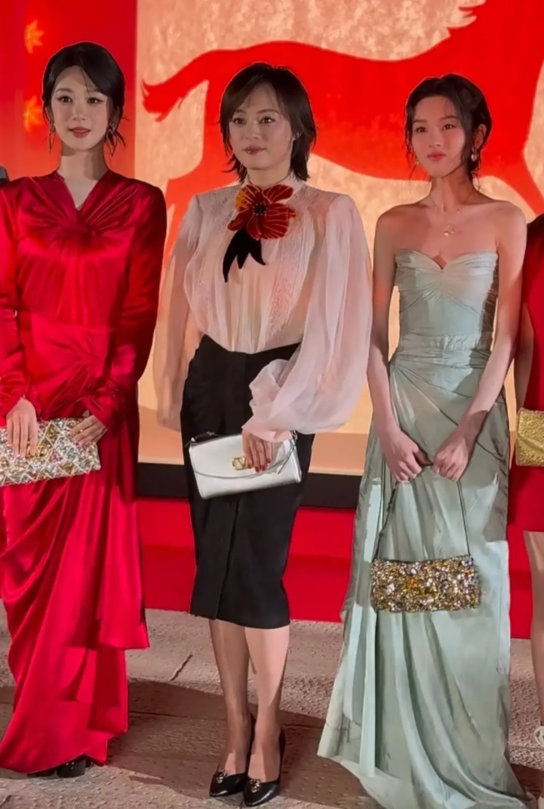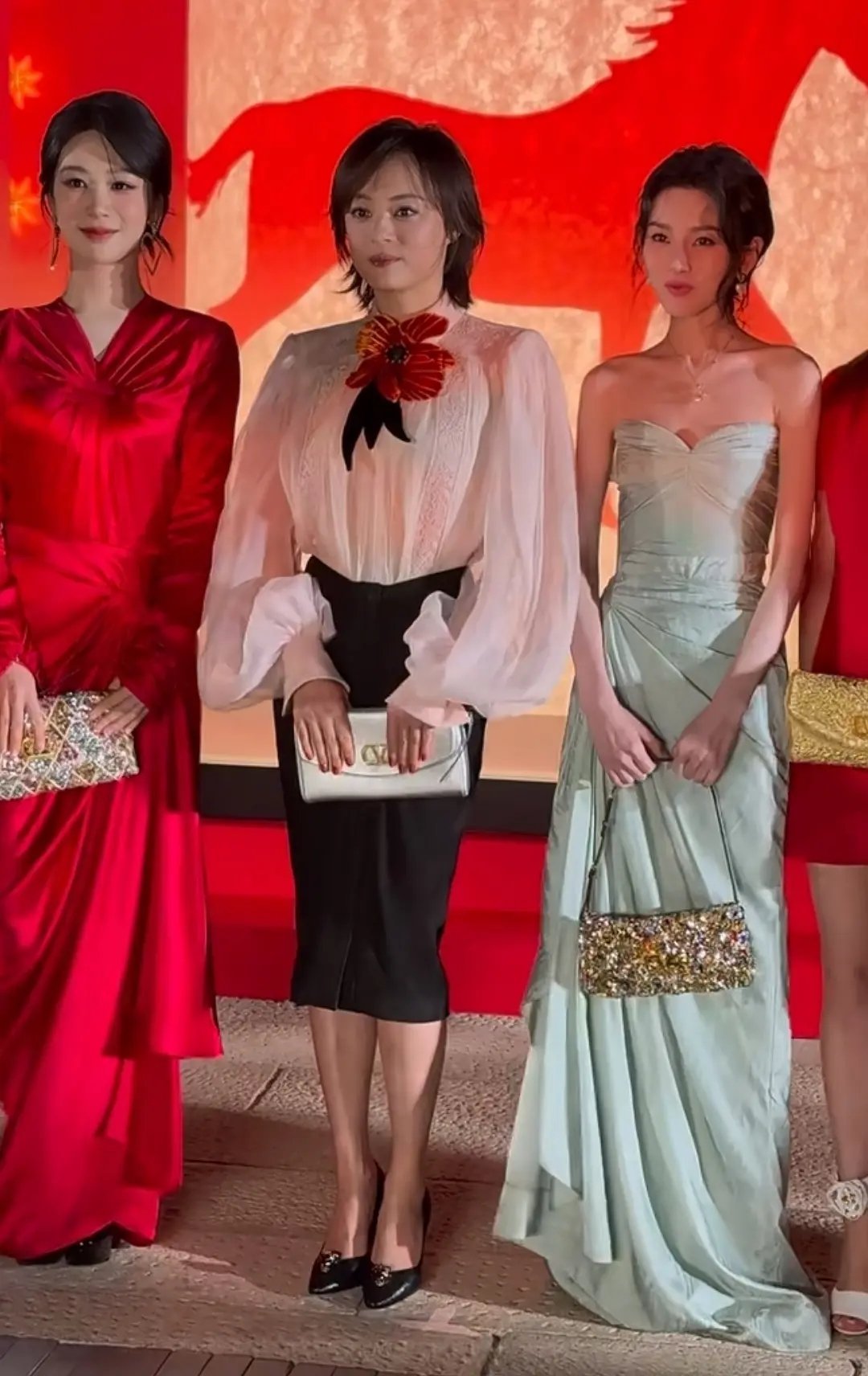 张天爱跟素人合影,胯真的好宽,大宅院似的