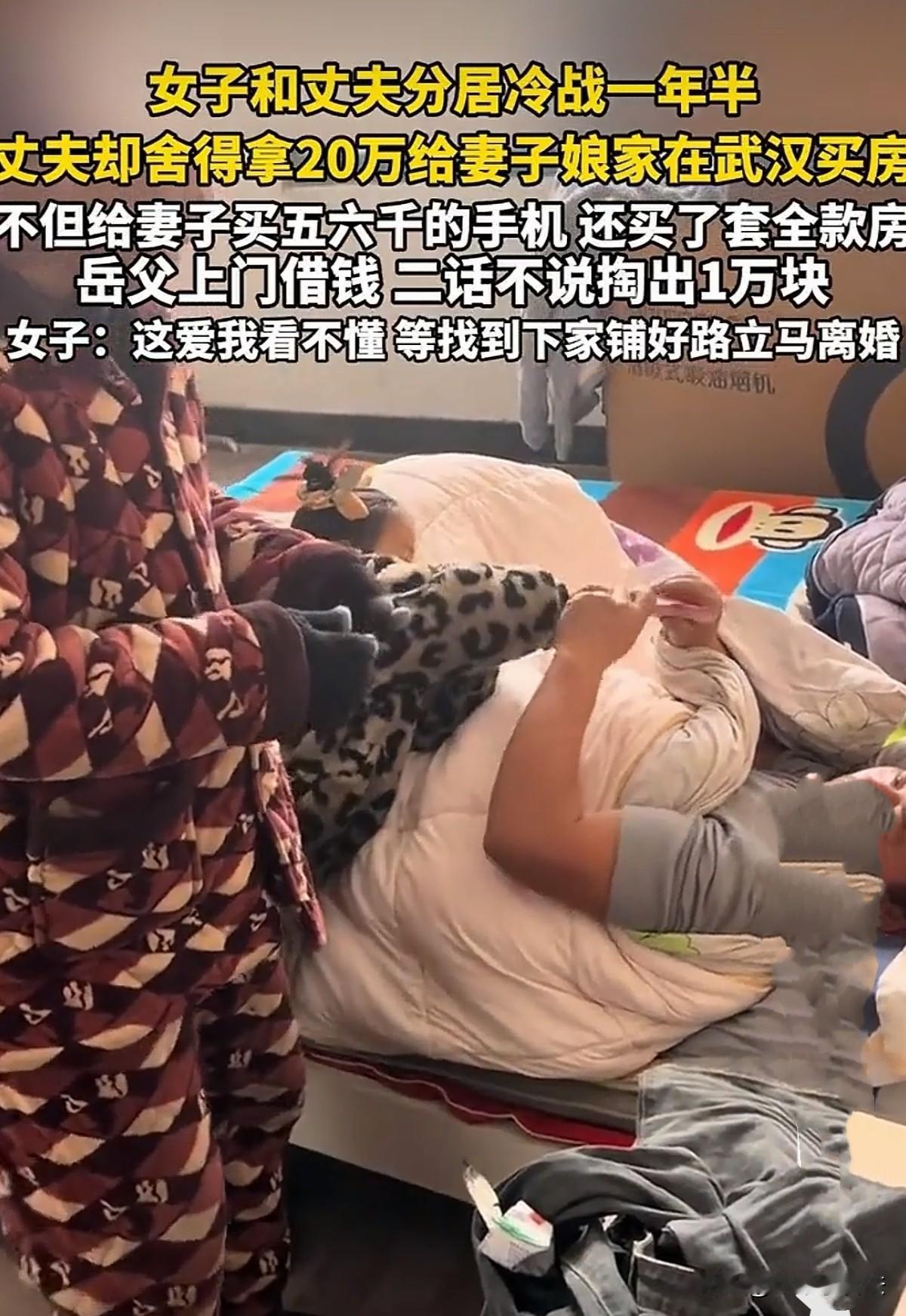 “他是不是傻!”湖北武汉,女子与丈夫冷战分居已一年半,可丈夫居然给妻子买了套全款房,还给她买五六千的手机,甚至还拿出20万元给她娘家购置了房产,父亲来借钱,他二话不说直接给10000元。女子有些迷糊:这爱我看不懂,等找了下家铺好路立马离婚!网友:这货还能找到下家?想多了! 女子与丈夫结婚多年,夫妻间的感情一直平平淡淡,甚至经常闹矛盾,可他和岳父母的关系,却好得没话说。 在岳父母眼里,这个女婿踏实、大方、孝顺,简直比亲儿子还要贴心,平日里对他也是百般疼爱。 也正是因为这份情谊,在夫妻俩因为一次激烈争吵,彻底分居之后,男子依旧没有疏远岳父母,反而比以前更加上心。 明明妻子已与他分居长达一年半,感情冷到冰点。平日里几乎没什么交流,全程处于冷战状态,可男子心里却始终放不下这个家,更放不下妻子。 他想着,只要自己真心付出,总能让妻子回心转意。 于是,他悄悄给妻子买了一部价值五千多块钱的新款手机,妻子收到后没有拒绝,坦然收下了,可态度依旧冷淡,甚至心里满是疑惑:明明都闹成这样了,他到底想干什么? 男子的“示好”远不止于此。分居的这段时间,他自己全款买下了一套房子,写在妻子名下。 这还不够,他又毫不犹豫拿出20万现金,给岳父母买了房,甚至主动承诺,之后的房贷全都由他来承担。 在他心里,只要能让岳父母开心,能让妻子看到自己的诚意,花再多钱都值得。 面对这样大方又孝顺的女婿,岳父母自然是喜出望外,逢人就夸自己的女婿好,也一次次苦口婆心劝女儿:这么好的男人打着灯笼都难找,别再耍小性子了,好好跟人过日子。 可不管父母怎么劝,妻子心里的疙瘩就是解不开,对男子的态度始终冷冰冰,甚至在心里已经做好了离婚的打算,只等找到合适的下家铺好路,就彻底结束这段婚姻。 让妻子心里越发不舒服的是,丈夫对自己父母好到了极致。 有一次,岳父手头紧张,上门来找男子借钱,当时已快到中午,男子还赖在床上没起来,可一听说岳父需要钱,二话不说就从床上爬起来,拿出1万块现金塞给岳父,还贴心地说:拿着花,不够再说。 岳父拿着钱笑得合不拢嘴,这一幕落在妻子眼里,却让她不解,也更加认定,两人之间已经没有感情了。 在妻子看来,男子还有个让她无法忍受的毛病,太懒,经常大半天都窝在被窝里不起床,生活习惯让她十分反感。 可她却忽略了,男子虽懒,却十分能挣钱,有能力全款买房,能随手拿出20万孝敬岳父母,更能毫不犹豫给岳父拿1万块零花钱,这份担当和财力,已远超很多普通男人。 这件事被分享到网上后,立刻引发了网友们的激烈讨论。 大家几乎一边倒地心疼这位男子,不少人说他是妥妥的“恋爱脑”,一味地付出真心和金钱,却换不回妻子的半点回头。 有女网友直言,自己作为女人都觉得,这样的丈夫已无可挑剔,岳父母拿了这么多好处,真该好好劝劝女儿,别等到失去了才后悔。 也有网友无奈表示,这样一味倒贴的男人,最后往往落不到好结果,感情里最怕的就是一厢情愿。舔狗,舔到最后一无所有! 而大家最关心的,还有一个现实问题:如妻子铁了心要离婚,男子之前花出去的这么多钱,还能要回来吗? 《民法典》第657条:赠与合同是赠与人将自己的财产无偿给予受赠人,受赠人表示接受赠与的合同。 如男子买房、买手机、给岳父母的20万,都是他在分居这一年半里自己挣的,属于个人财产,而且他当初是自愿赠与,没有约定是借款,赠与行为一旦完成,离婚时是没办法要回的。 可如果这些钱动用的是夫妻共同财产,男子在没经过妻子同意的情况下,擅自大额支出,就可能侵犯了妻子的财产权,在离婚时会产生新的纠纷。 其实整件事看下来,男子的心意再明显不过,他从未想过放弃这段婚姻,即便分居、冷战,依旧用自己的方式守护着妻子和岳父母,倾尽所有去挽回。 可感情从来不是金钱能衡量的,他以为砸钱就能捂热妻子的心,却不知道,妻子在意的或许是生活里的细节,是两人之间无法调和的矛盾。 而妻子也始终没明白,一个愿意在分居时还为你倾其所有,对你的父母掏心掏肺的人,有多难得。 真希望两人能静下心来好好沟通,要么解开误会重修于好,要么体面分开,别让真心被白白辜负,也别让一段缘分,只剩下金钱的拉扯和无尽的冷漠。 您对这样的男人怎么看?