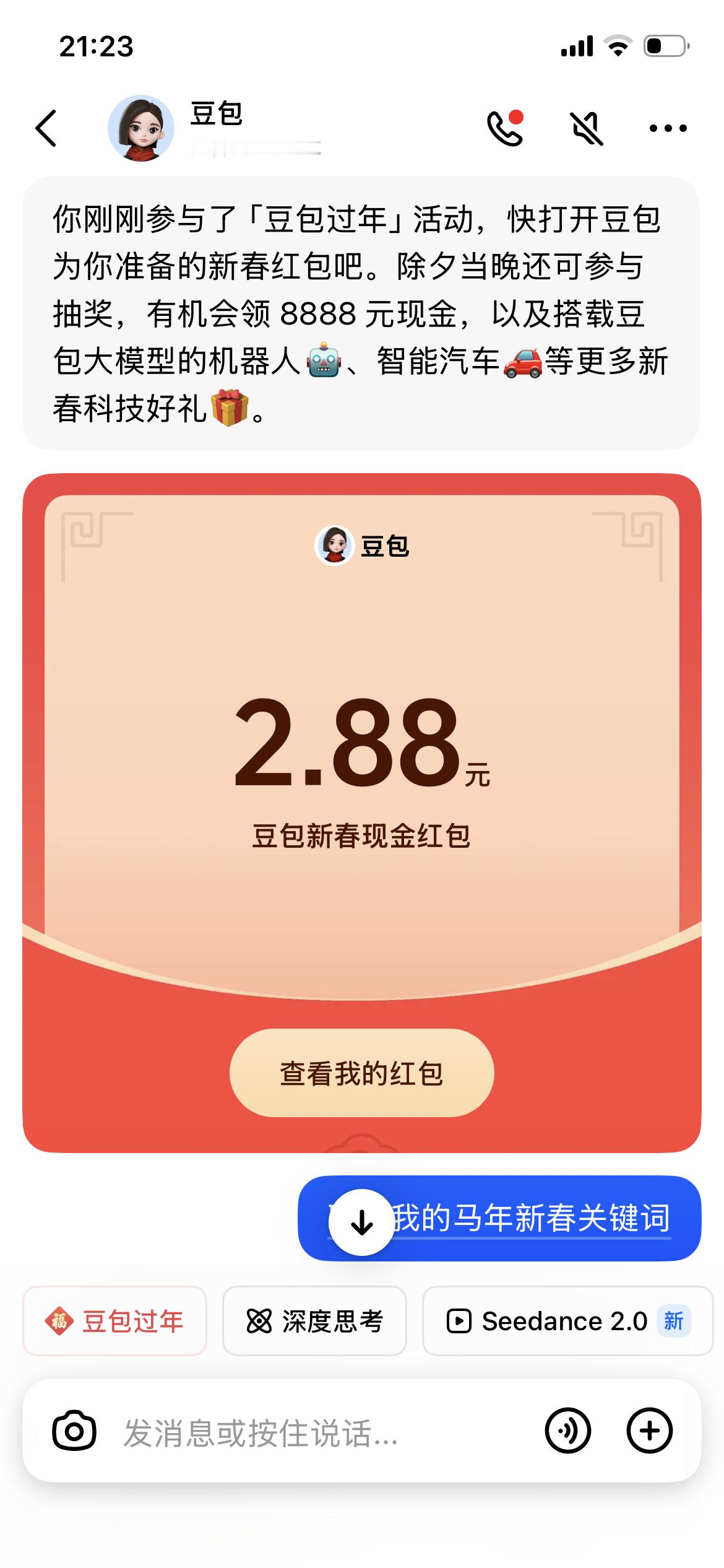 豆包红包感谢豆包红包发的零钱,还要绑定抖音,两块钱不容易啊