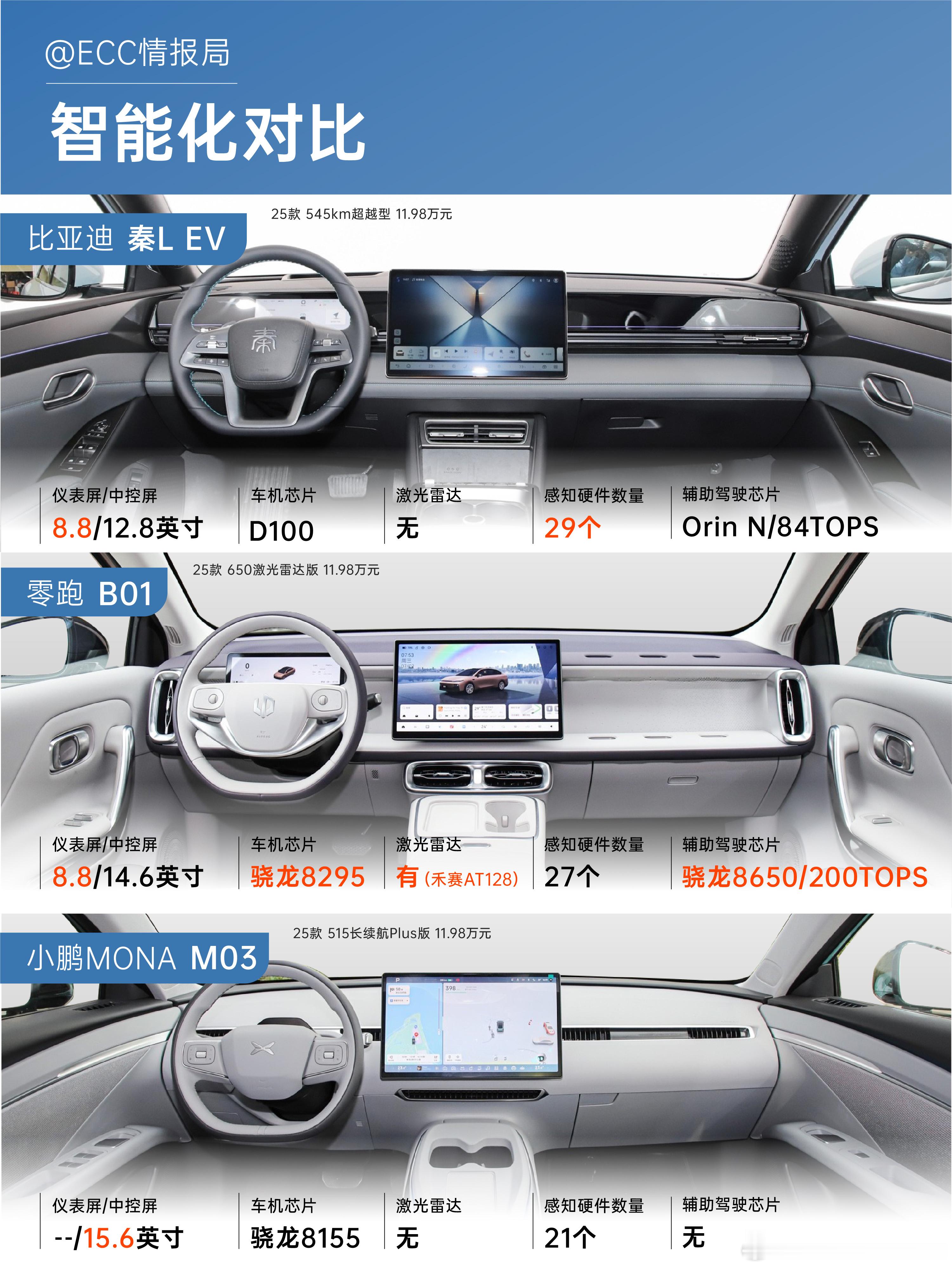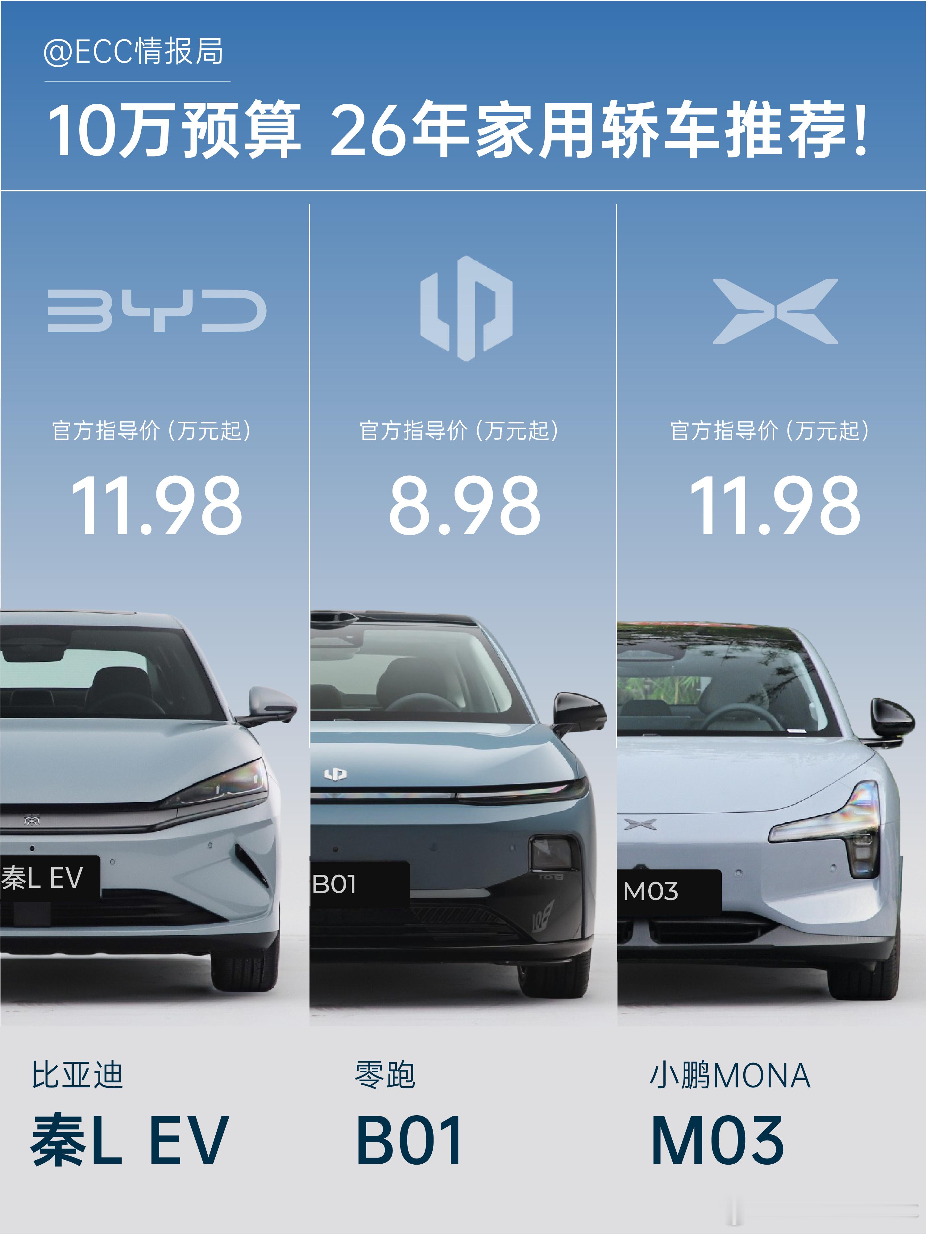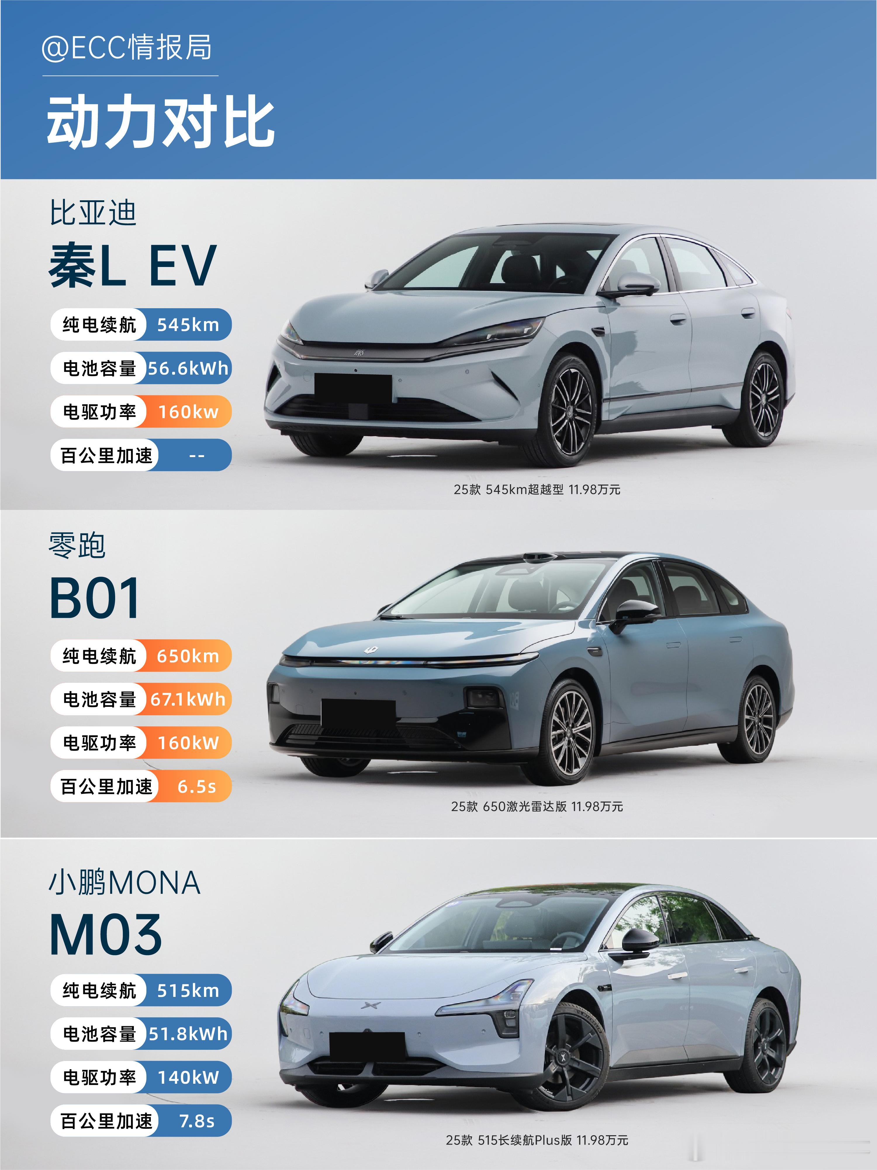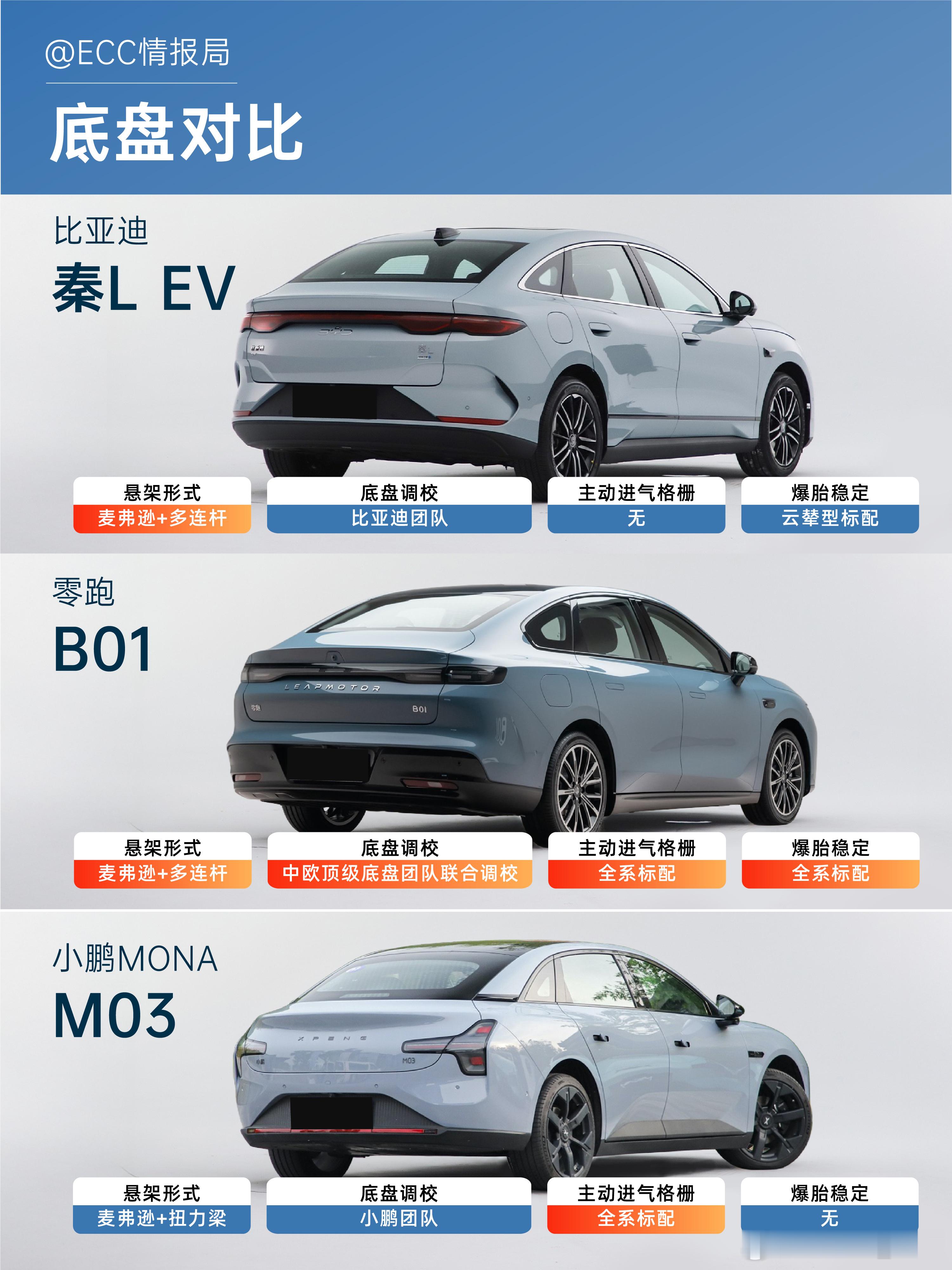 10万预算买车,在 比亚迪秦 L / 零跑 B01 / 小鹏 M03 之间反复横跳,其实很正常。因为这三台车,代表的是三种完全不同的取向。 别急,我们一次聊清楚,到底差在哪。 ⭐【外观与定位】 ✅ 比亚迪秦 L: 设计稳妥,耐看不张扬,主打“不会出错”。 ✅ 零跑 B01: 三台里最年轻的一台,比例干净,不走“成熟稳重”路线,更像给第一次换纯电、又不想太中庸的人准备的。 ✅ 小鹏 M03: 体量最大,轴距和后备厢更有优势,明显偏家用、偏空间。 ⭐【动力与续航】 秦 L 动力和续航表现中规中矩; B01 在相近价格下电池更大、续航更长; M03 配置相对保守,把重心放在尺寸和空间上。 ⭐【底盘与行驶质感】 这是三台车分化最明显的地方。 ✅ 比亚迪秦 L: 麦弗逊 + 多连杆后悬,但是只有云辇版本才标配爆胎稳定系统,同时没有主动进气格栅,底盘取向偏均衡,配置存在明显分层。 ✅ 零跑 B01: 麦弗逊 + 多连杆后悬,全系标配主动进气格栅和爆胎稳定系统,底盘由中欧顶级团队调校。优势不在“堆料”,而是在行驶稳定性和极限安全冗余上,属于你日常可能感受不到,但关键时刻更安心的那一类配置。 ✅ 小鹏 M03: 有主动进气格栅,但没有爆胎稳定系统,取向更偏舒适。 ⭐【智能座舱与智能驾驶】 这里,路线差异非常清楚。 ✅ 比亚迪秦 L: 传感器多,但不走激光雷达路线,偏稳健; ✅ 零跑 B01: 三台车只有零跑B01的高配是带激光雷达的,车机与辅助驾驶芯片规格也最高,B01 高配是三台里唯一带激光雷达的,算力和硬件冗余最高; ✅ 小鹏 M03: M03 屏幕大、视觉强,但硬件冗余相对收敛。 ⭕那问题来了,你更看重哪种“价值”? 是选 秦 L 的成熟稳妥? M03 的大空间与尺寸优势?还是 B01 这种,把底盘、安全冗余、续航和智能驾驶上限放在同一套体系里的“全能型”? 如果你更看重是 B01 ,2 月 28 日前下定,还有限时政策,最高 21466 元的综合权益,送电池终身免费质保和免费赠送家充设备,现金优惠、终身质保、免息金融、家充桩一次性配齐。 如果你在找一台真正不偏科的纯电家轿,B01 至少值得你去试一脚。