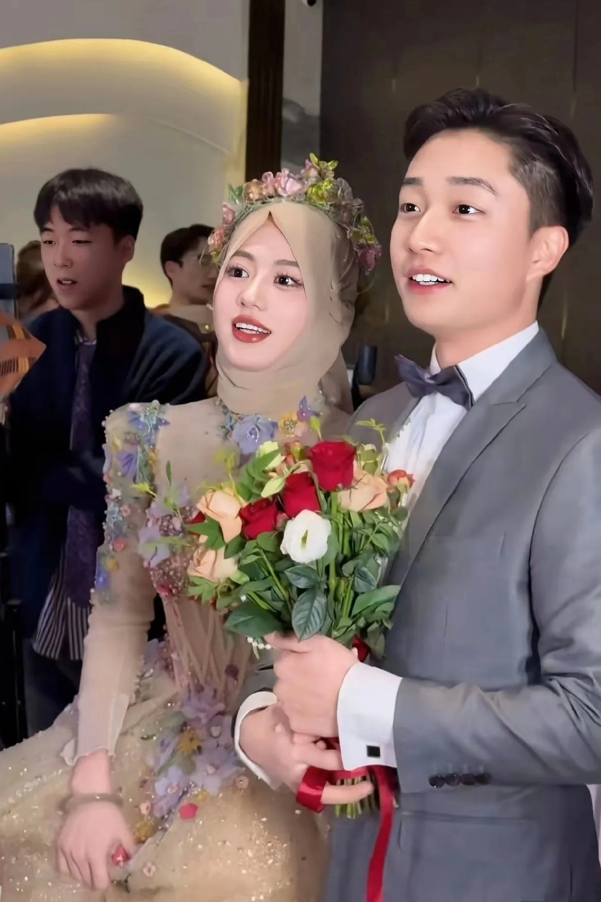这个是回族的新娘吗?实在是太漂亮了,第一次见这种淡黄色的婚纱