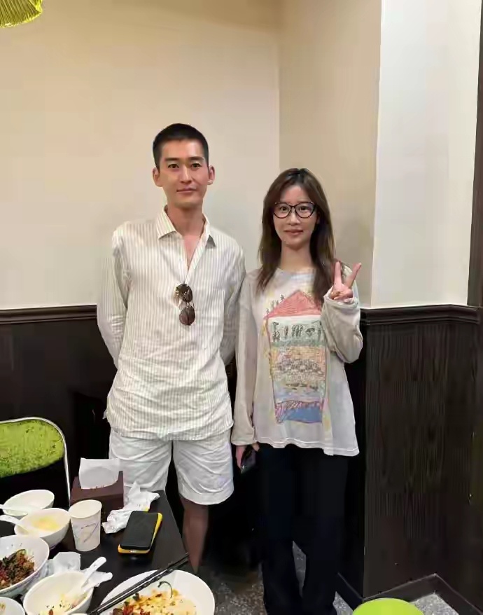 张天爱跟素人合影,胯真的好宽,大宅院似的