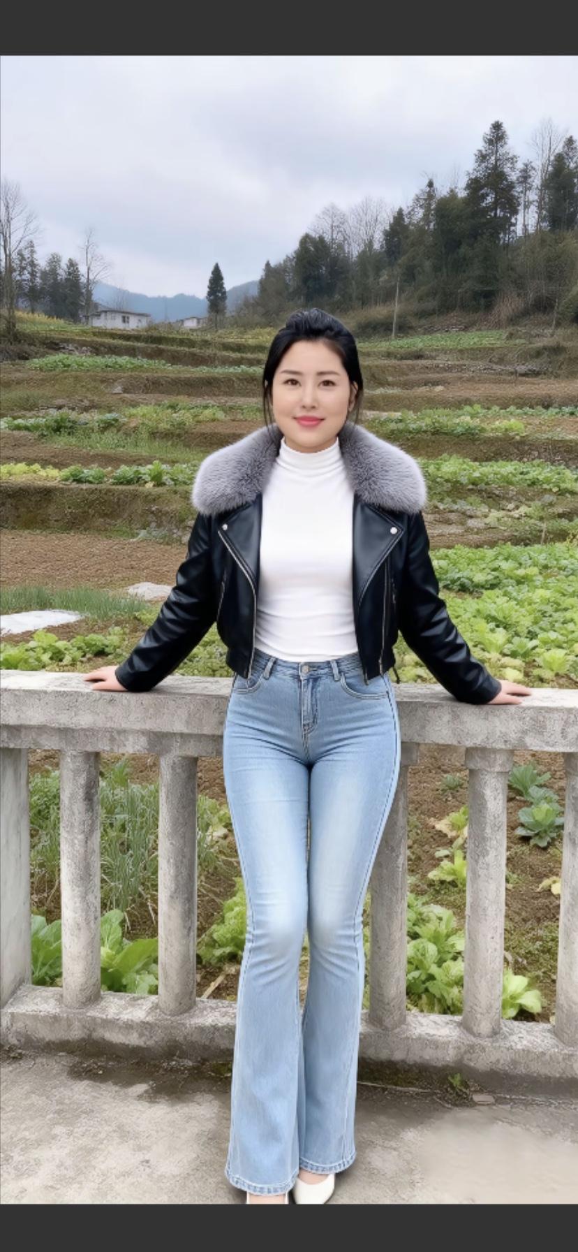 皮草牛仔裤,轻松自在