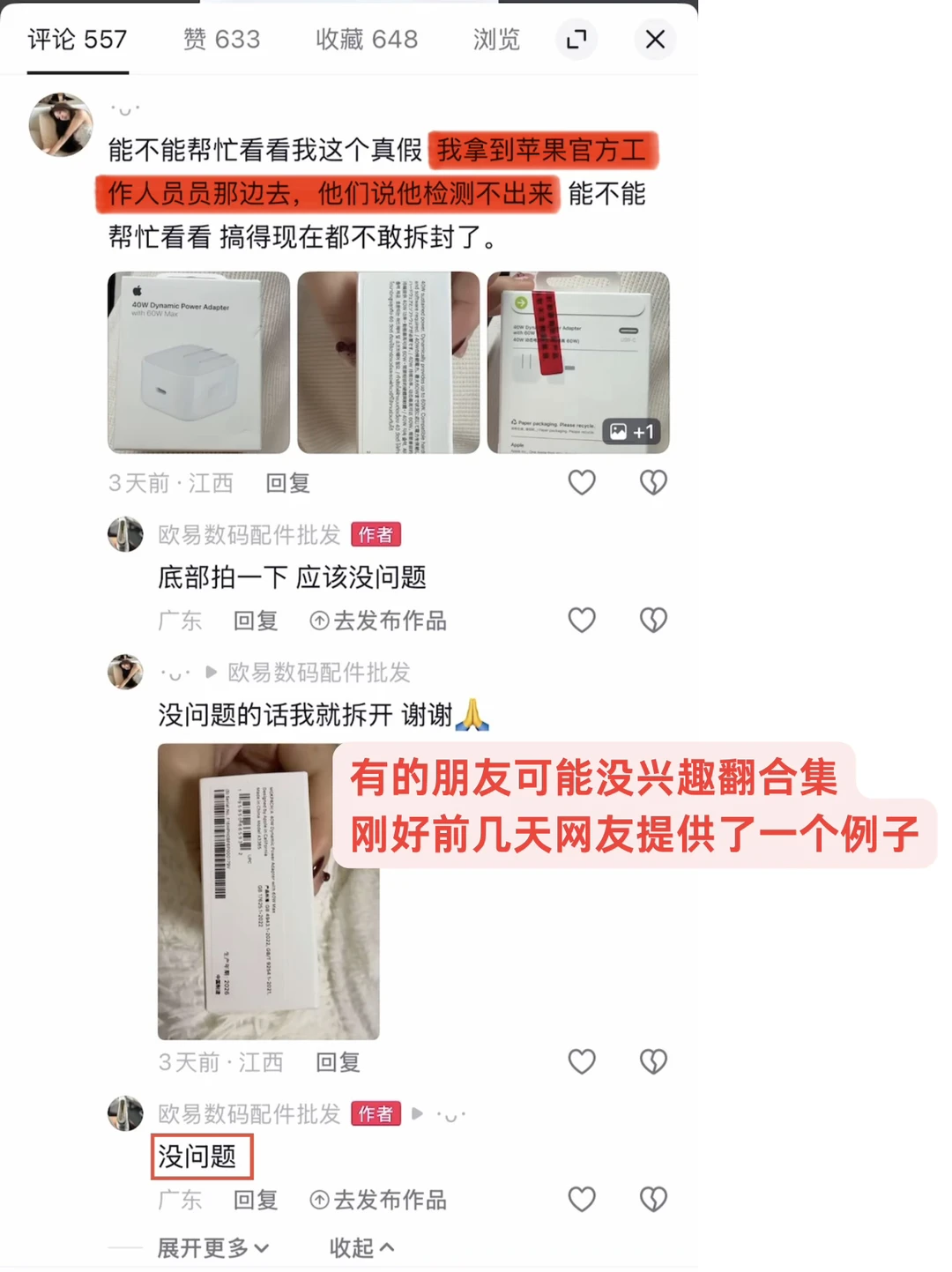 这三个充电头都来自同一个渠道 两真一假