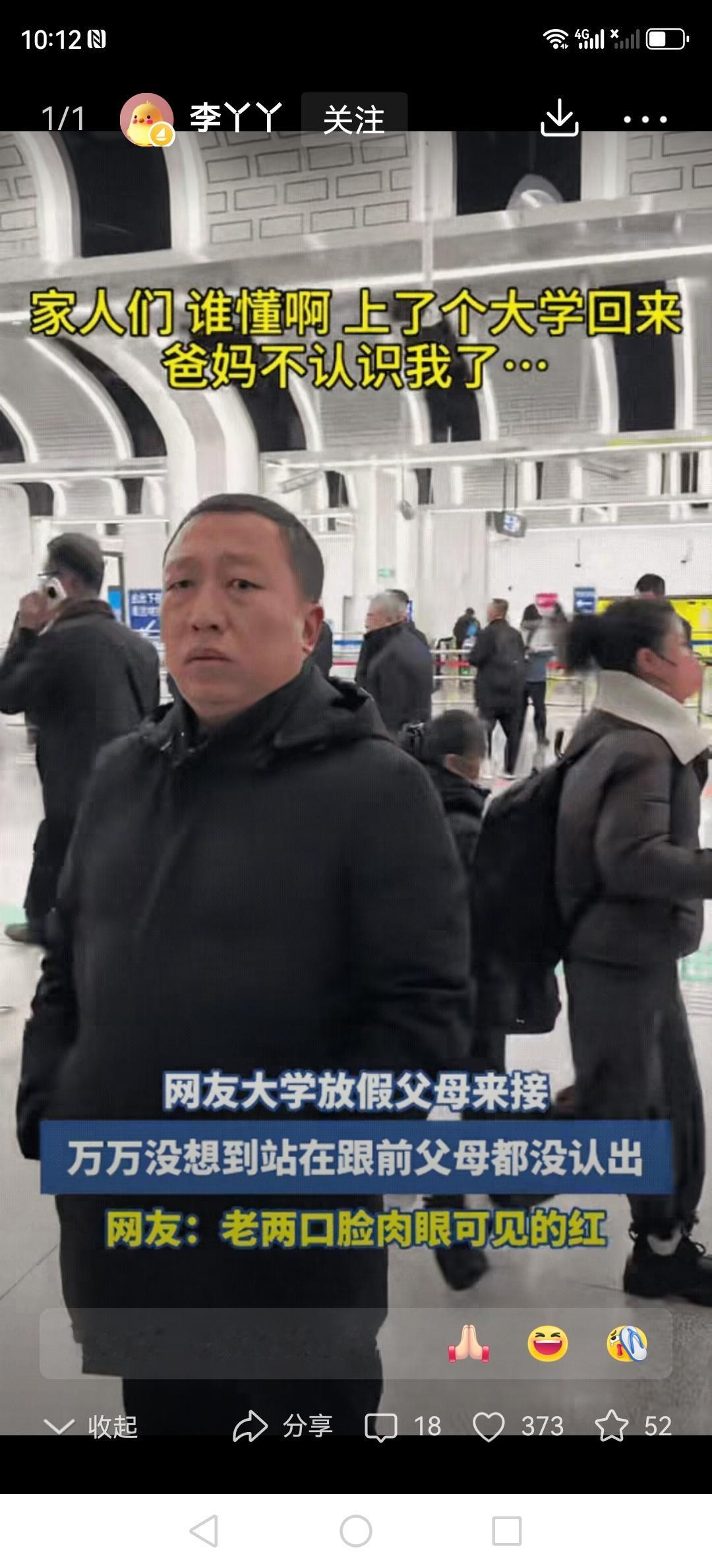 自家娃站眼前都没瞅见?现在的爸妈可真难伺候!大学生放暑假回家,去车站接他时,愣是把眼前这小伙子当成了过路人。男生故意清了清嗓子想提醒,亲妈却直接掏出手机,还跟电话那头念叨“我家儿子呢,找不着了”,等儿子自己走过去一揭晓,全家当场笑到直不起腰。 这事儿一出来,网友们都看呆了:到底是孩子在外面变化太大,还是爸妈眼神不太好使?有人开玩笑说“怕不是偷偷去整容了吧”,也有人心疼“孩子在外面上学,爸妈估计都快记不清长啥样了”。其实啊,现在年轻人出门,口罩帽子一戴,胖了瘦了都藏着,亲妈一时间也真容易犯迷糊! 最逗的是男生全程憋着笑,看爸妈伸长脖子在人群里使劲瞅,愣是没敢出声,直到主动上前才揭晓谜底。想想这画面:爸妈踮着脚找儿子,儿子在旁边偷偷憋笑,这不就是现实里的“最熟悉的陌生人”嘛。 都说儿行千里母担忧,可妈见着儿子却认不出。你觉得这事儿怪谁?是现在年轻人变化太快,还是爸妈该多打打视频电话?你家有没有过爸妈认不出你的搞笑瞬间?评论区分享一下呗! -search.byteimg.com/img/tos-cn-i-qvj2lq49k0/ab6db97d6ead44fabd9db4a2f4012a1c~480x480.jpeg最熟悉的陌生人 口罩帽子