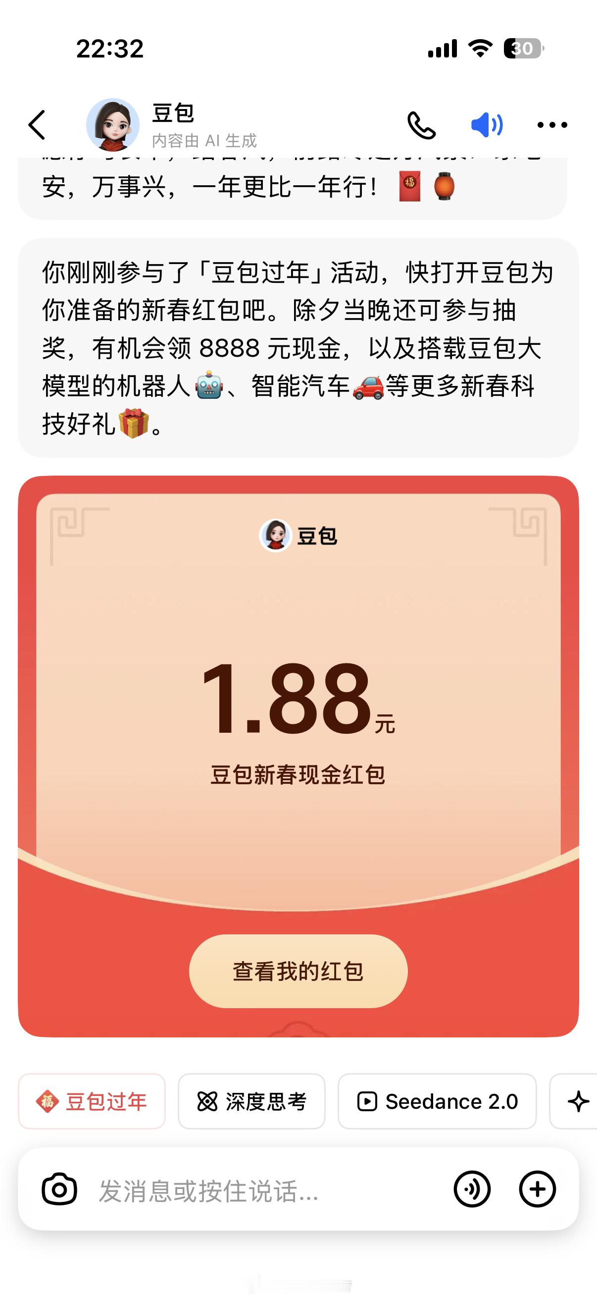 豆包红包还有比我小的吗?今年除夕夜晚上22点15庆舍的宠粉计划 我准备给铁粉、金粉、钻粉们发三轮大红包老铁们,记得及时来