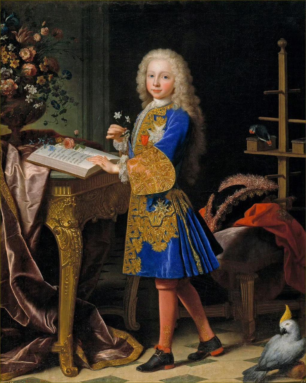 西班牙波旁王朝国王“开明者”卡洛斯三世,原那不勒斯国王、西西里国王。 1759年西班牙波旁王朝君主“博学者”(el Prudente)费尔南多六世(Fernando de Borbón y Savoy)去世后,卡洛斯继位西班牙国王(1759-1788在位) 图为1723年,7岁时的Carlos Sebastián de Borbón y Farnesio(未来的西班牙国王卡洛斯) Le futur Charles III, roi d'Espagne, à 7 ans, en 1723, par Jean Ranc. L'infant est en train d'herboriser, examinant des fleurs, la main posée sur un volume des "Bucoliques" de Virgile.