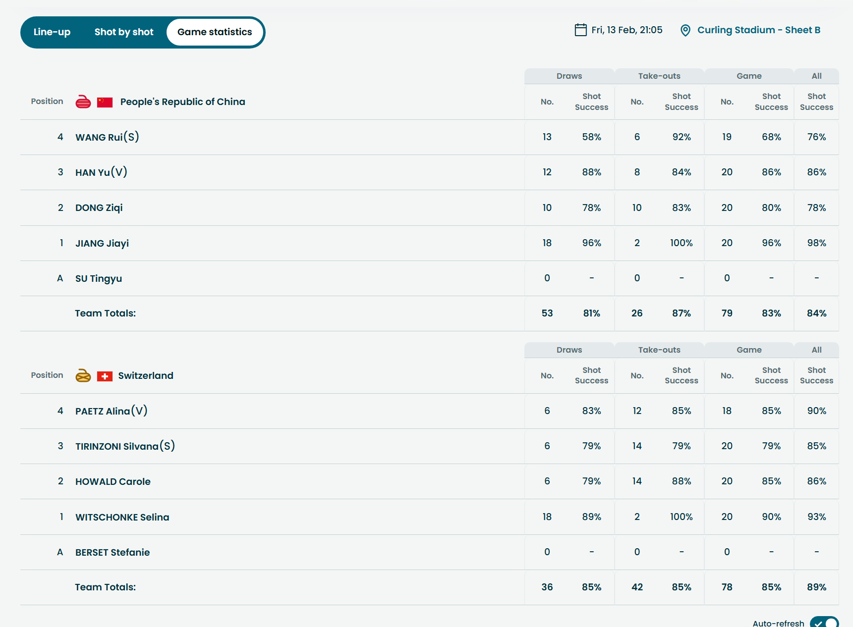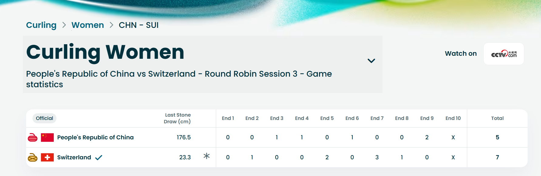 【奥运冰壶】中国5-7瑞士,目前循环赛一胜一负,好好休息,下一场对康姐领衔的意大利女壶(0胜2负)