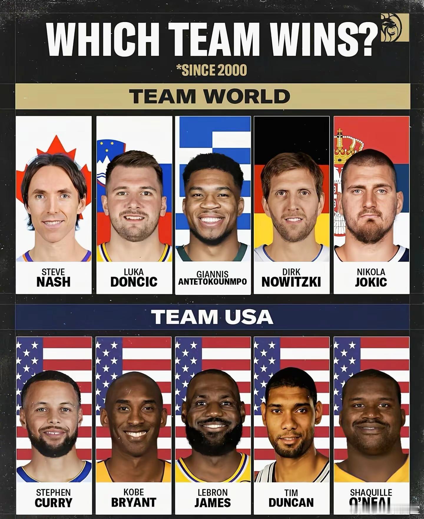 历史最强美国队VS历史最强世界队,你看好哪队赢?
