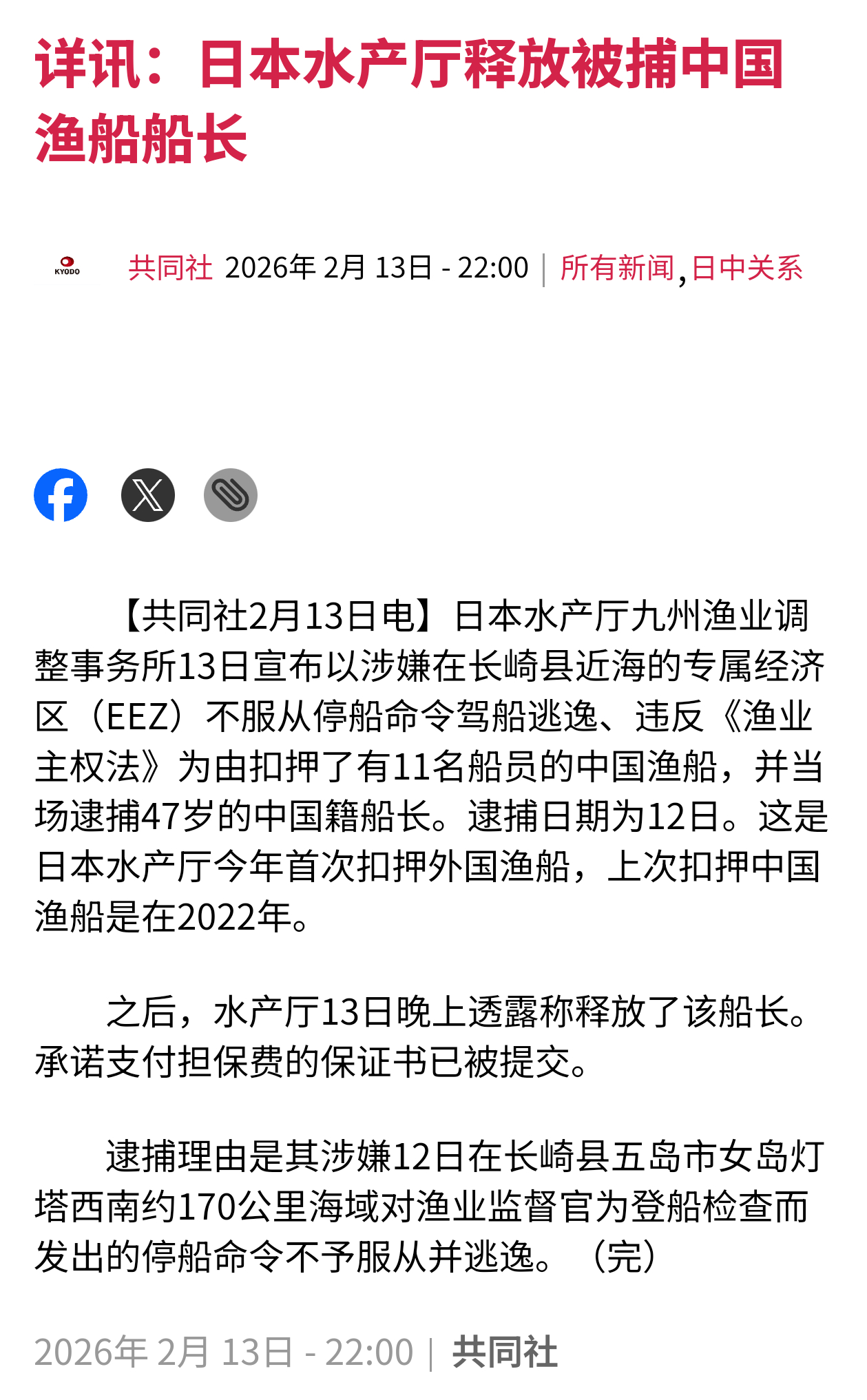 日本渔业厅扣押中国渔船——日本每日新闻报道,2月12号,日本渔业厅以未遵守在所谓