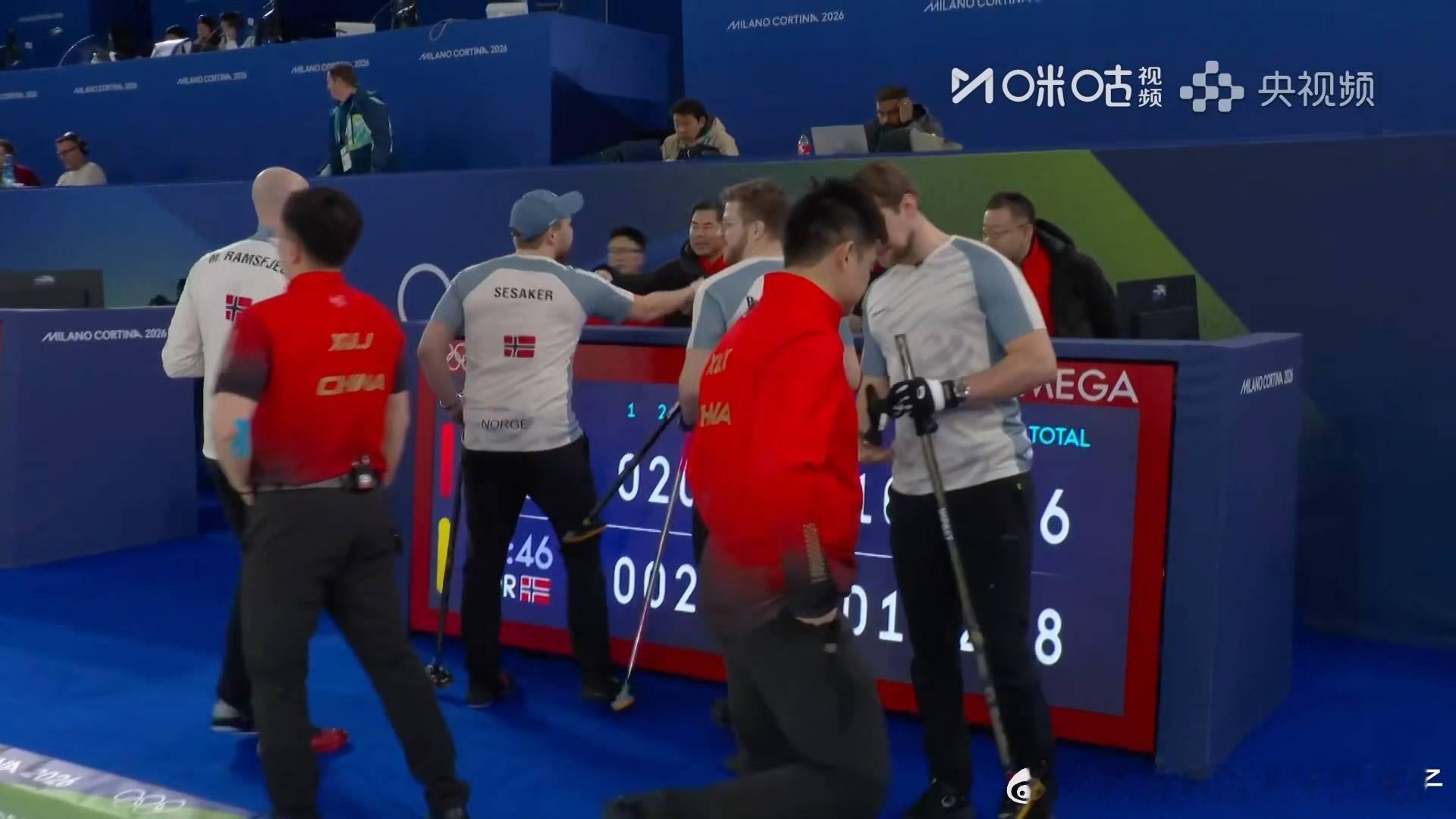 米兰冬奥会中国冰壶男队vs挪威 中国队🇨🇳6比8挪威🇳🇴中国队加时局不敌挪威队,目前两连败凌晨两点还有一场对阵瑞士,好好休息吧