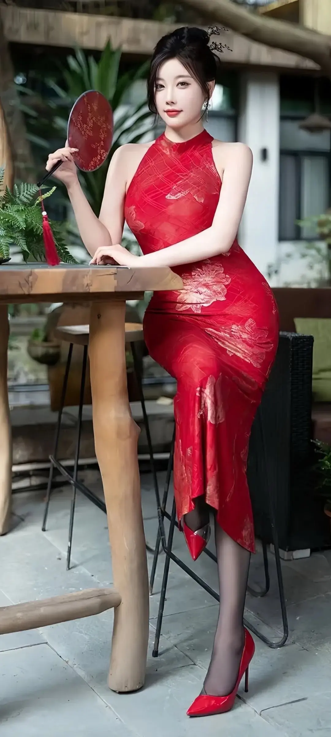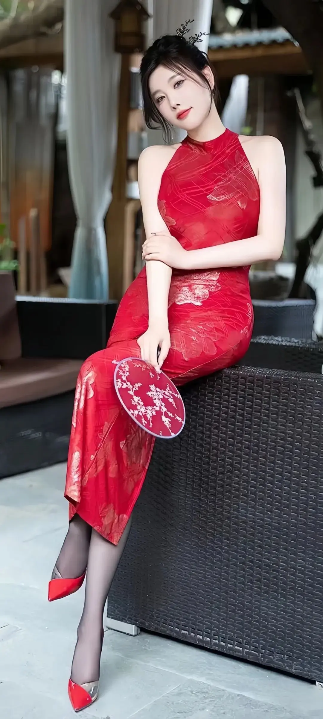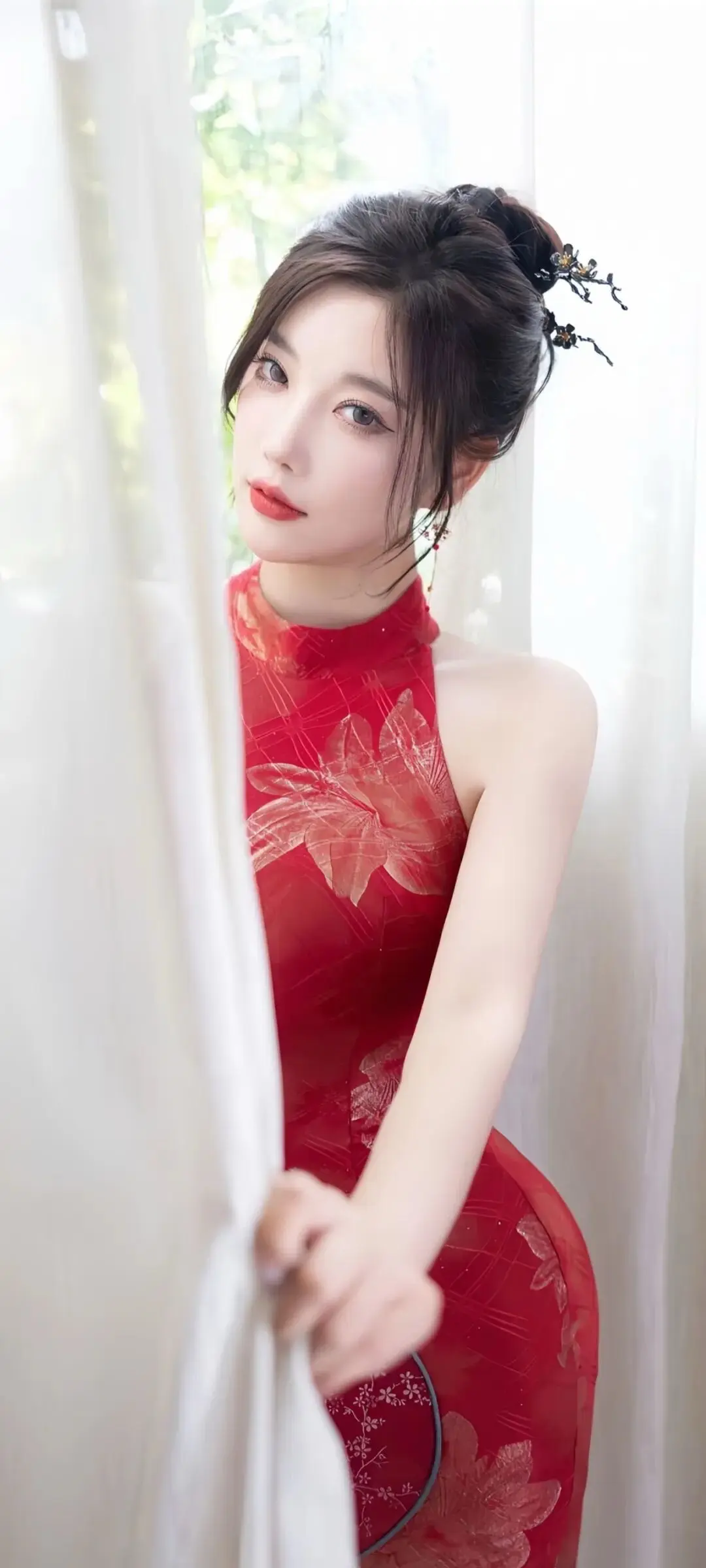 杨晨晨|一袭红绸旗袍,勾勒东方韵味!