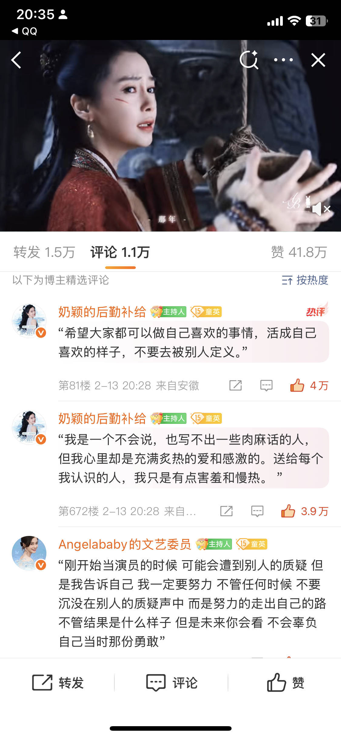 Angelababy今晚测速一分钟一万 三分钟三万 七分钟四万粉丝还是很长情