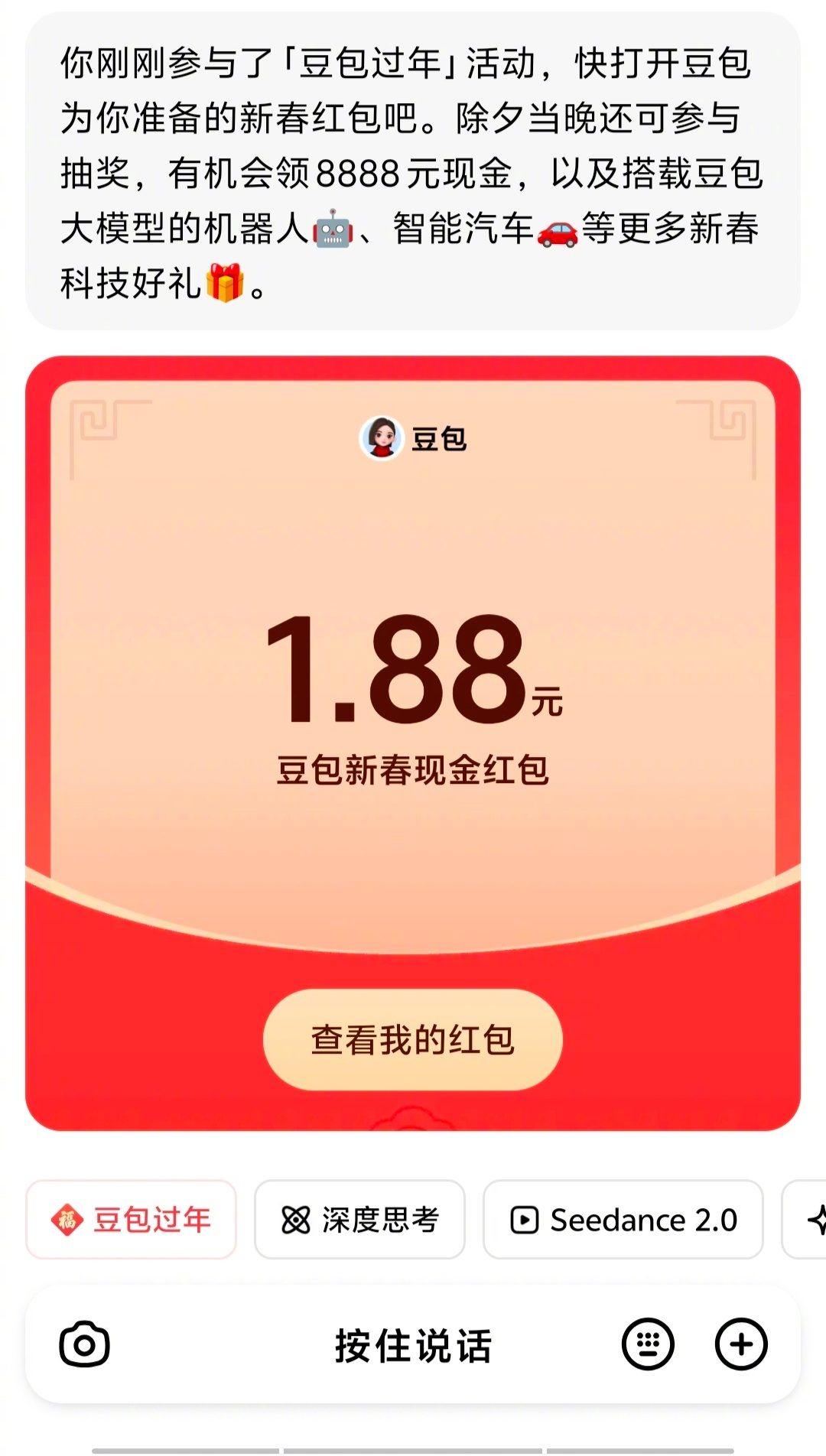 豆包红包 1.88元的红包,你领到了吗?