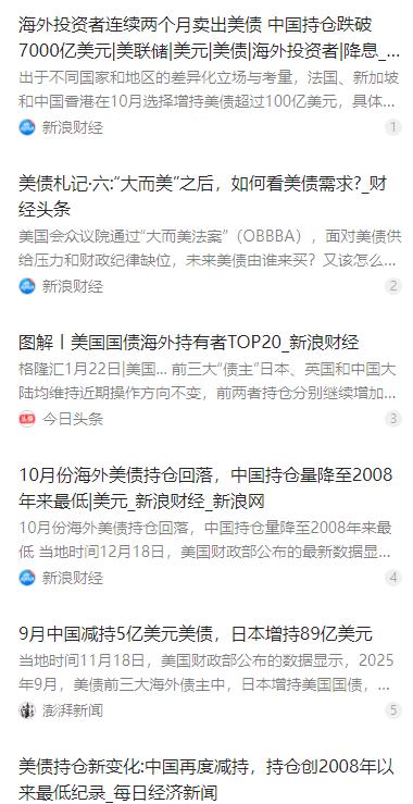 美国的终极打算是,还不起美债,最后干脆逼死债主!不过现在最危险的并不是中国,因为75%的美国国债都掌握在美国人自己手中,这才是他们面临的最大难题。 麻烦看官老爷们右上角点击一下“关注”,既方便您进行讨论和分享,又能给您带来更多优质的内容,感谢您的支持! 很多人以为美国欠下巨额国债,最大债主是中国、日本这类海外国家,一旦还不上就会想方设法赖掉外债,逼死海外债主。这种看法看似合理,却完全搞错了美债的真实结构,也低估了美国债务问题的核心矛盾。 根据美国财政部最新公布的持有结构数据,美国国债约七成由本国主体持有,海外投资者占比仅三成左右。真正持有美债的主力,不是外国政府,而是美联储、社保基金、各类养老金、商业银行以及普通美国民众。 这意味着,所谓 “还不起就赖账、逼死债主” 的说法,一旦落地,最先被收割的不是海外投资者,而是美国自身的金融体系与普通中产。明面上违约会直接击穿市场信用,动摇美元根基,美国根本不敢这么做。 美国处理高额债务的惯用路径,从来不是公开违约,而是长期温和通胀搭配金融压制。用持续的物价上涨悄悄稀释债务面值,让手里持有储蓄、债券、养老金的群体默默承担购买力缩水的代价。 美债不只是普通的国家债务,更是整个美元金融体系的底层抵押品,银行授信、金融交易、流动性稳定都高度依赖它。一旦触碰这一底层资产,等于直接动摇美国金融体系的地基,对外转嫁风险的空间已经非常有限。 当下美国国债的矛盾,早已不是国际间的债权债务问题,而是国内不同群体之间的成本分配问题。政府、金融机构、普通家庭、退休群体,谁来为不断膨胀的债务最终买单,才是华盛顿最棘手的难题。 近年来,中国、日本等主要海外债权人都在主动降低美债风险敞口,通过减持、多元化配置等方式保护自身资产安全,逐步减少对美债的依赖。 真正被深度锁定在美债链条里难以脱身的,是美国国内的养老金、社保基金与普通储户。他们没有太多灵活调整的空间,只能被动承受债务扩张带来的长期成本。 美国债务问题的终极风险,从来不在外部,而在内部。把矛头对准海外债主,不过是转移视线的说法。真正决定美国未来金融稳定的,是它能不能处理好内部的债务分配与偿付压力。
