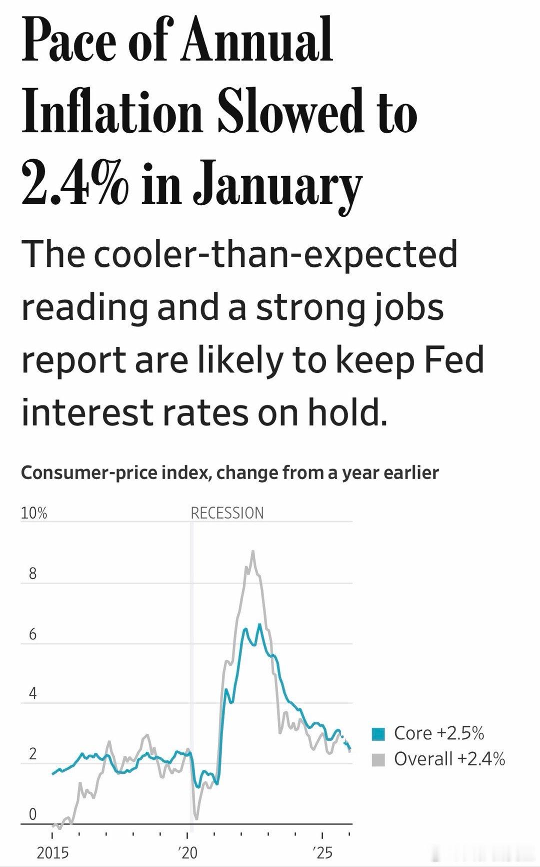 通胀缓和,结合一月非农就业良好,美联储会继续暂停降息