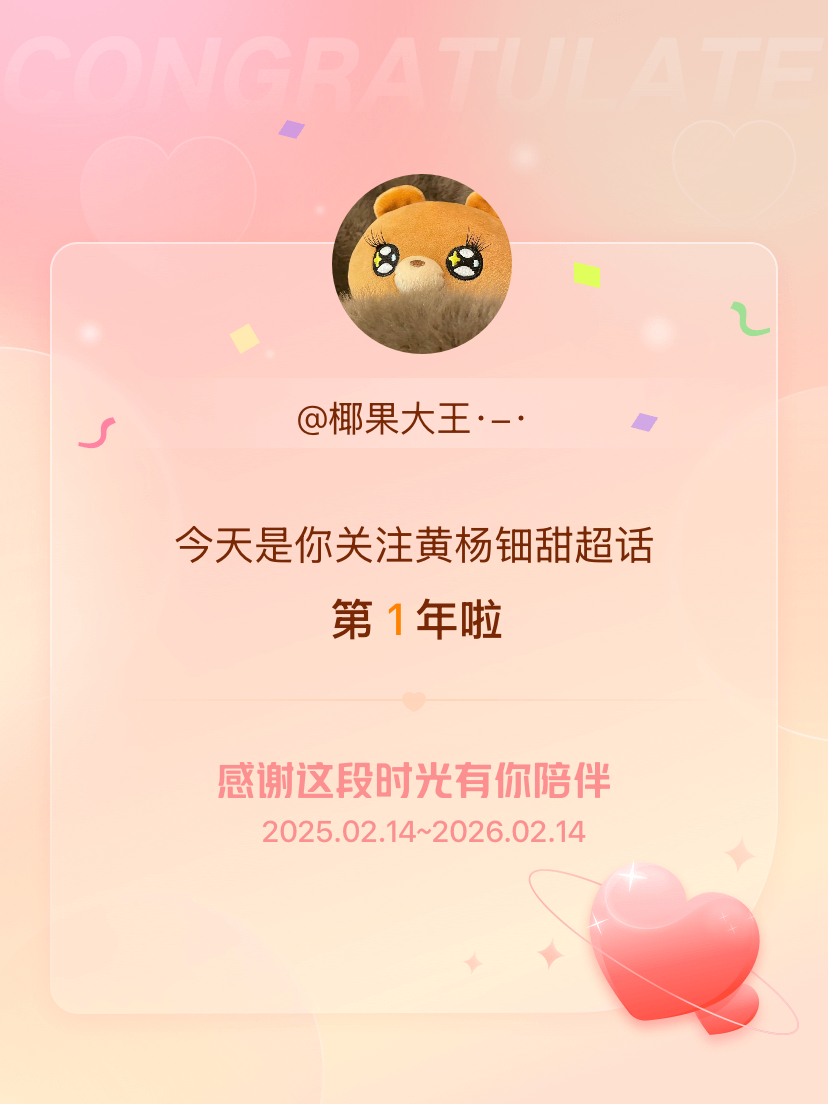 黄杨钿甜今天是我关注超话的第1年,希望能继续伴你一路前行~