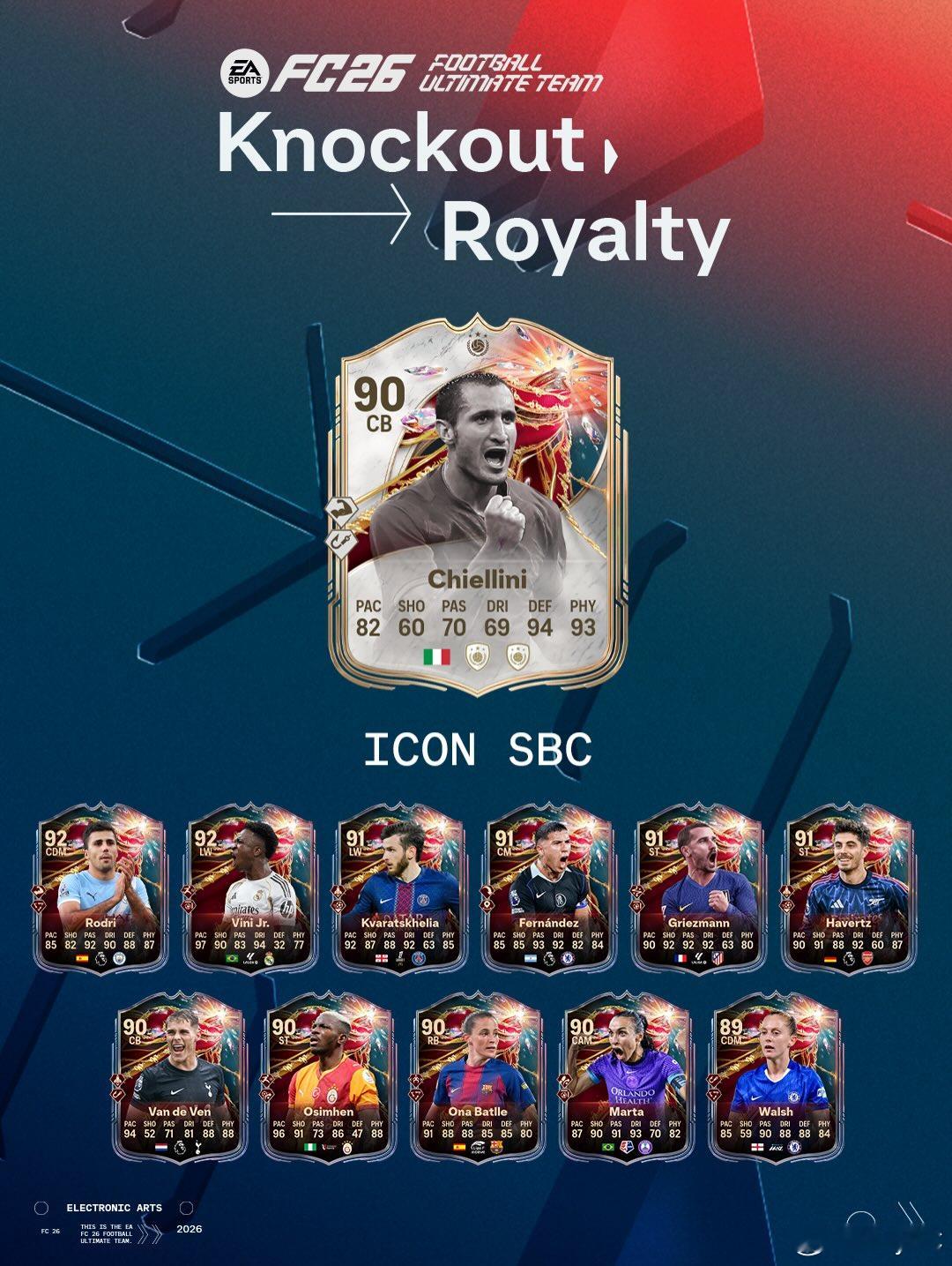2月14日【新增 SBC】共 7 个:1. Giorgio Chiellini|10 个挑战2. 淘汰赛之王挑战 1|1 个挑战3. 79+ 三重升级|可无限重复|1 个挑战4. 84+ TOTW 升级|可无限重复|1 个挑战5. 冬季补给品升级|可重复4次|1 个挑战6. 英超一月最佳球员|4 个挑战7. Gilberto Silva|5 个挑战