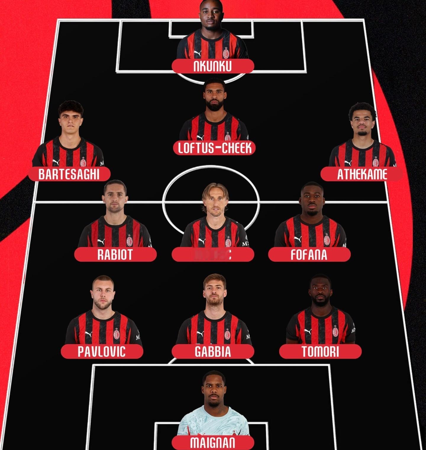【首发阵容】2025-26赛季意甲联赛 第25轮-🔴⚫️米兰客场对阵比萨队(3511);队长:迈尼昂🇫🇷.©️