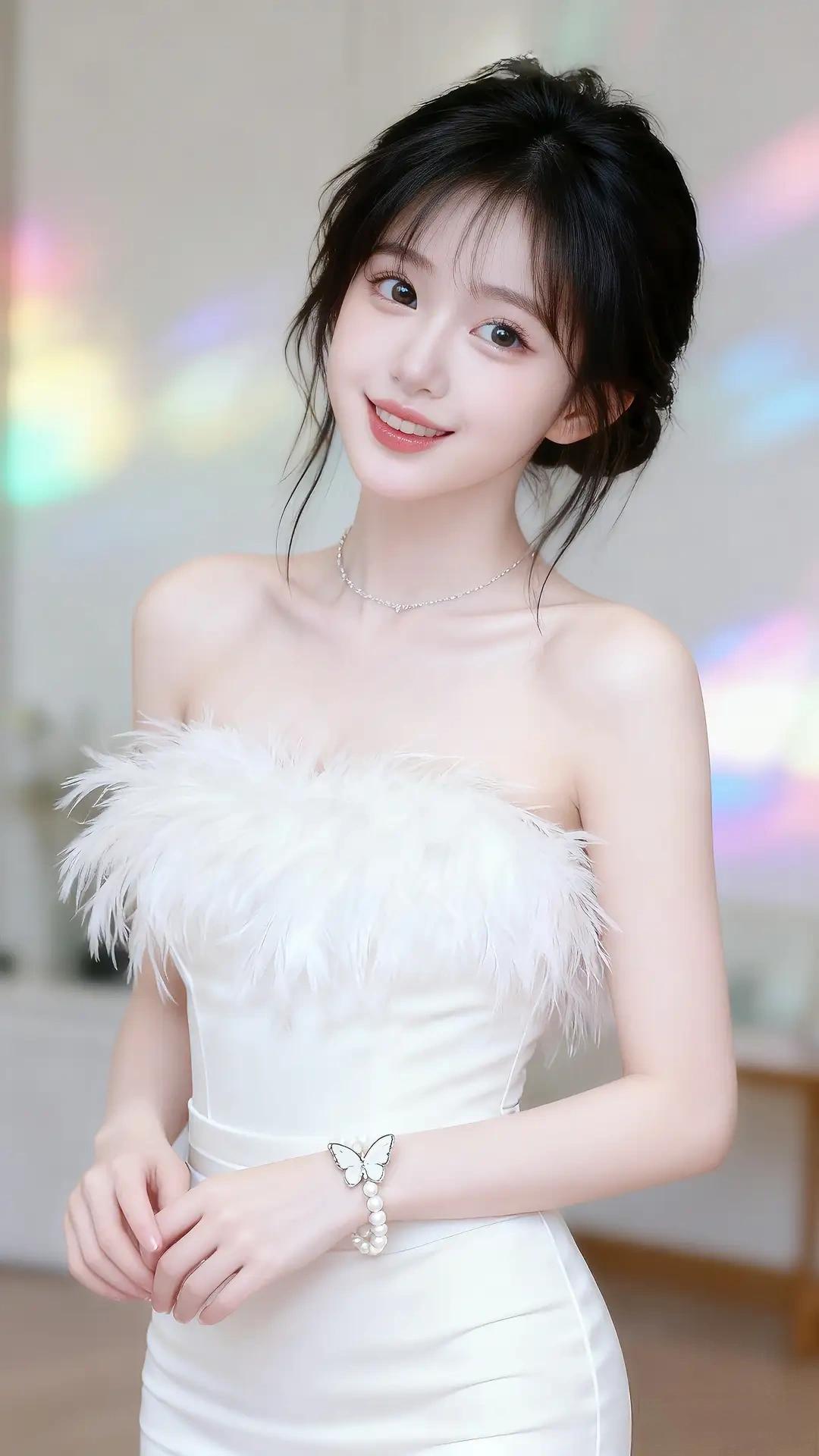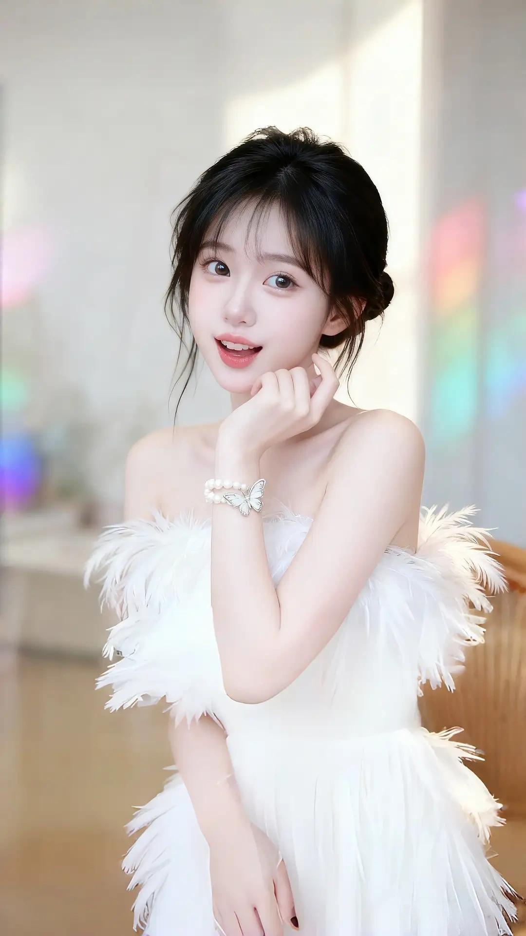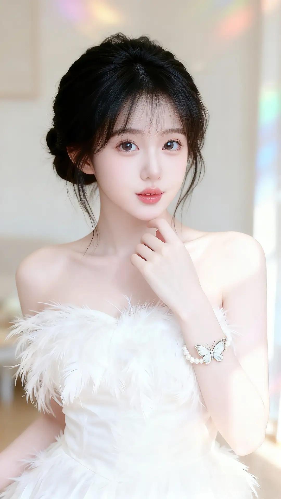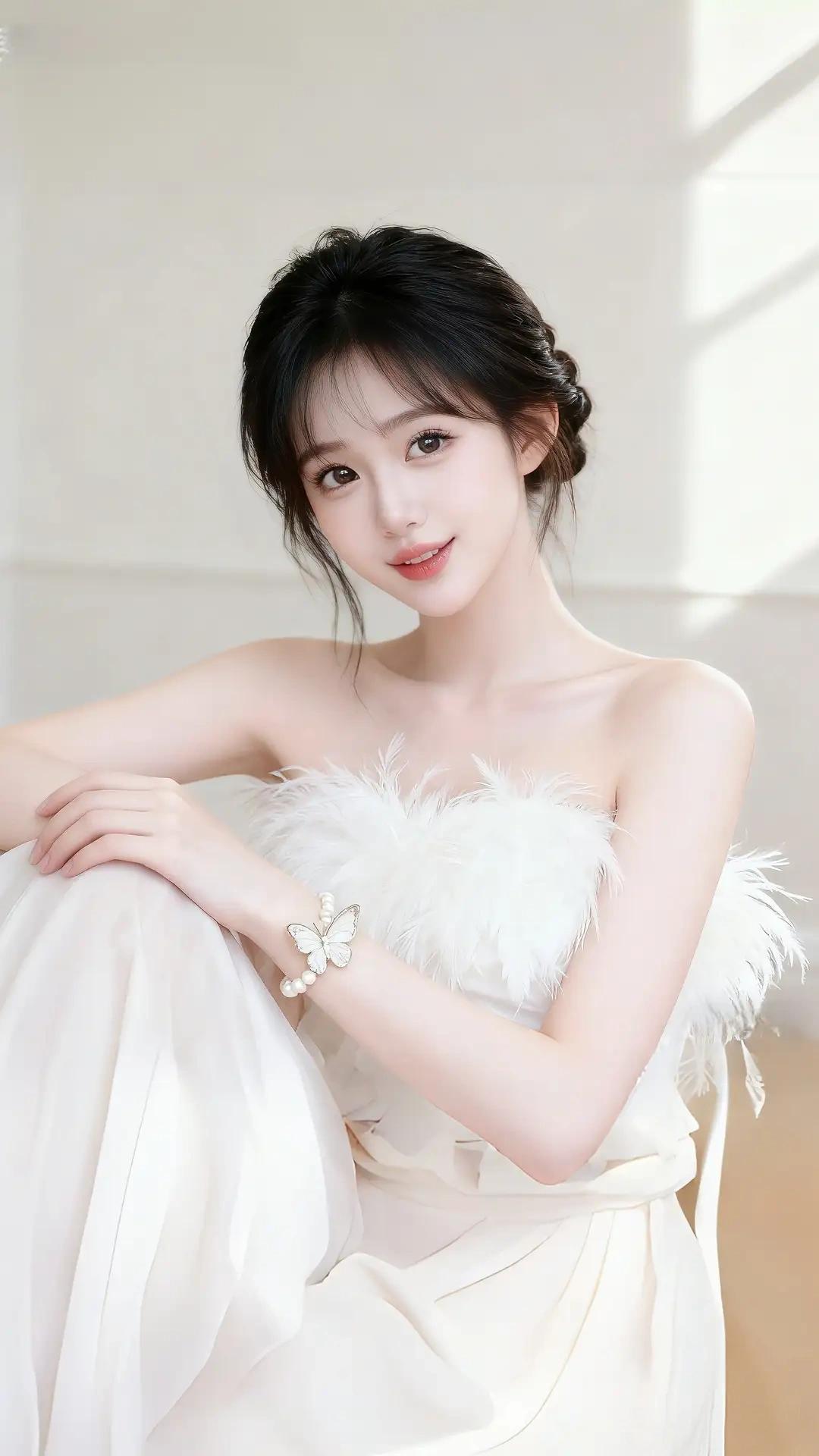 以下是为您创作的文案: 版本一:温柔氛围感 初见时,你像一阵温柔的风,吹散了所有的烦闷。白色羽毛裙勾勒出少女的曼妙,蝴蝶手链在腕间闪烁,仿佛藏着整个夏天的秘密。你低头浅笑的瞬间,连空气都变得甜丝丝的,原来心动真的只需要一眼。 版本二:优雅气质型 纯白礼服裹挟着轻盈的羽毛,像把云朵穿在了身上。你站在光里,发丝微卷,眼眸含笑,每一处细节都透着精致。蝴蝶饰品点缀腕间,为优雅添了分灵动。这一刻,你就是时光里最温柔的诗篇。 版本三:浪漫梦幻风 当羽毛裙邂逅蝴蝶手链,浪漫便有了具象的模样。你像从童话里走来的精灵,眼眸清澈,笑容甜美,连背景的光斑都成了衬托你的星光。愿这份纯真与美好,能治愈每一个平凡的日子。