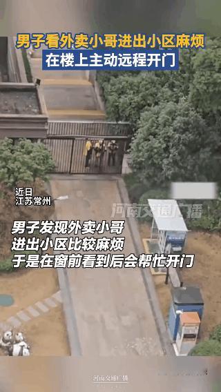 近日江苏一小区门口,几位外卖小哥因进不了门急得团团转,楼上一位男子看到后,远程打开了小区大门,让小哥顺利送餐。这一幕太暖了! 举手之劳的善意,解了外卖小哥的燃眉之急! 也让这个冬天多了份温度。 生活里总有这样的陌生人,用小小的举动传递着大大的爱,这样的温暖值得被更多人看见。 你觉得这举动怎么样?外卖小哥 外卖哥感动瞬间 堵门外卖