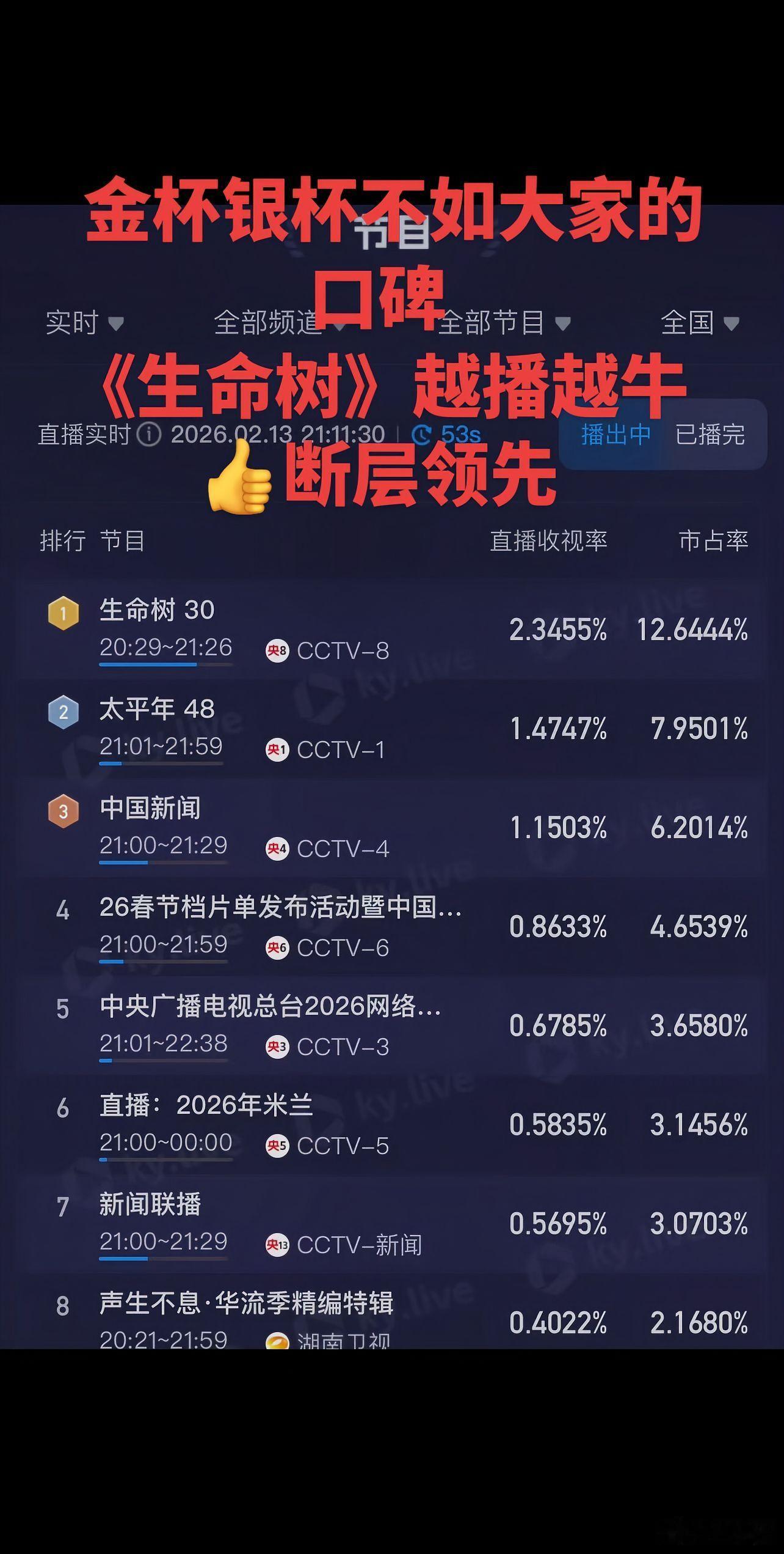 《生命树》越播越牛了!👍断层领先!金杯银杯不如大家的口碑生命树后期尺度杨紫生命树