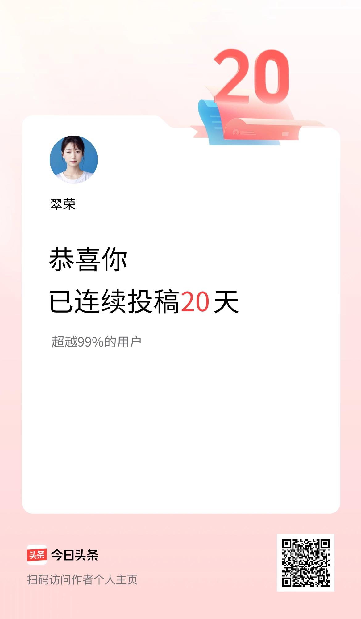 我在头条连续投稿20天
