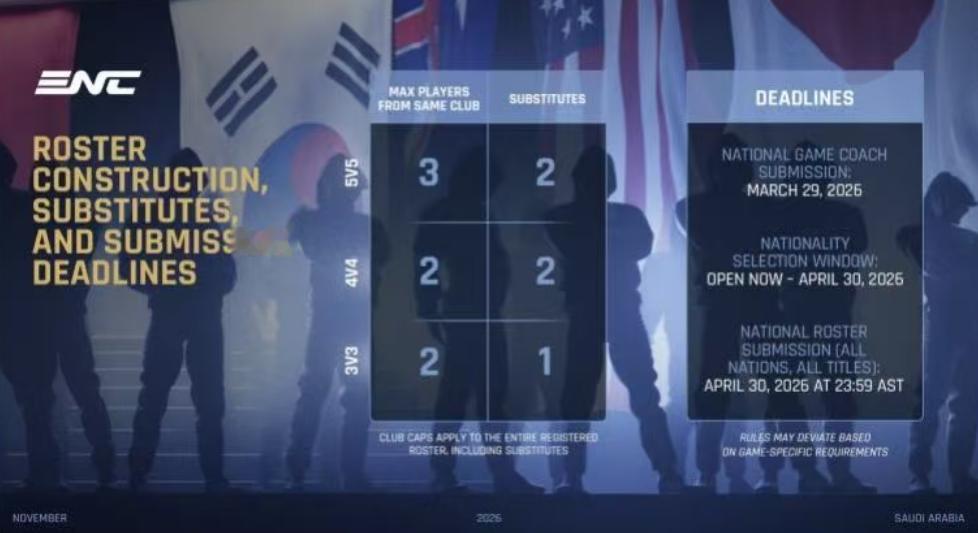 以国家/地区为参赛单位的电竞世界杯公布团队项目的人员细则,在5v5的游戏项目最多只能有3名来自同一俱乐部的选手,此举主要是想缩小成熟职业队和其他队的差距,就刀塔来说影响不算很大,比如XG本来也就三个中国人(如果打完TI还继续打的话),但对英雄联盟的影响应该挺大的