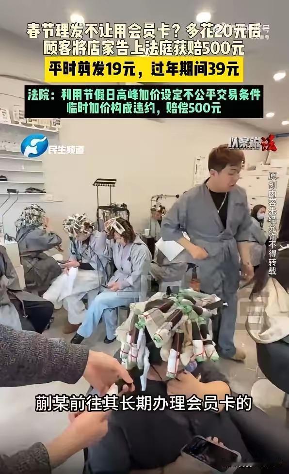 “玩不起!”山东菏泽,一男子在理发店办了张会员卡,每次理发19元,卡里还有400多余额,他春节前去理发,却被告知:春节期间会员卡不能用,必须付39元现金。男子有会员卡不让用,竟多花20元,他火冒三丈,直接把理发店告上法庭。法院判决出乎意料。 男子剪完头发走到收银台,像往常一样准备使用会员卡扣费。店员直接告知他,春节期间会员系统停用,只能按39元支付现金。他当场提出疑问,办卡时签的书面协议里,根本没有写节假日不能用卡、价格要上调的内容。店里只临时贴了一张手写纸条,没有提前发消息、打电话通知过任何一位会员。 他不想耽误过年理发的事,只能先付了钱。离开店铺后他越想越不舒服,20块钱不算多,但商家说改规则就改规则,完全不把之前的约定当回事。他回家翻出会员协议,反复确认没有节假日限制条款,主动找理发店沟通退差价,对方只拿“过年都这样”“成本涨了”来回绝,丝毫没有协商的意思。 身边人都劝他算了,为这点钱跑法院太折腾。他没有听劝,普通人的钱也是辛苦赚来的,约定好的事就该守信用。他整理好支付记录、会员协议、店铺临时通知的照片,把所有证据准备齐全,直接向法院提起诉讼。他不想要额外补偿,只想要回多花的钱,更想让商家明白,办卡时的承诺不能随便作废。 理发店在法庭上给出的理由很常见,春节客人多、人工贵,涨价是行业常态,会员系统升级只是暂时停用。这些说法站不住脚。法院核查后确认,双方的会员服务协议真实有效,店铺没有在办卡时告知节假日限制,也没有和消费者协商就单方面改规则,已经构成明确违约。所谓系统升级,只是商家临时找的借口,本质上是利用节日需求强制加价,侵犯消费者公平交易权。 依据民法典和最高人民法院关于预付式消费纠纷的司法解释,经营者不能用店堂告示、临时通知等方式,做出限制消费者权利、免除自身责任的规定。这类霸王条款,法律上直接认定无效。法院最终判决,理发店退还男子多收的20元,同时支付三倍惩罚性赔偿共计500元,还要承担本次诉讼的全部费用。 这样的判决让不少网友直呼解气。春节前后,理发、餐饮、洗车等行业临时涨价并不少见,合理调价可以理解,但不能拿老会员的权益开刀。消费者预存费用办卡,是基于对商家的信任,卡内余额是自己的钱,商家没有权利说停用就停用。 现实里太多人遇到类似情况选择忍气吞声,正是这种忍让,让部分商家越来越无视规则。男子的坚持告诉所有人,维权不分金额大小,合法权益受侵害就该站出来。小事较真,才能堵住更多霸王条款的口子,才能让消费环境更公平。 预付卡消费的底线是信守约定,商家想长久经营,就要尊重合同、尊重消费者。节日赚人气更要守信用,靠违约加价赚快钱,只会丢掉口碑,失去老顾客。 各位读者你们怎么看?欢迎在评论区讨论。