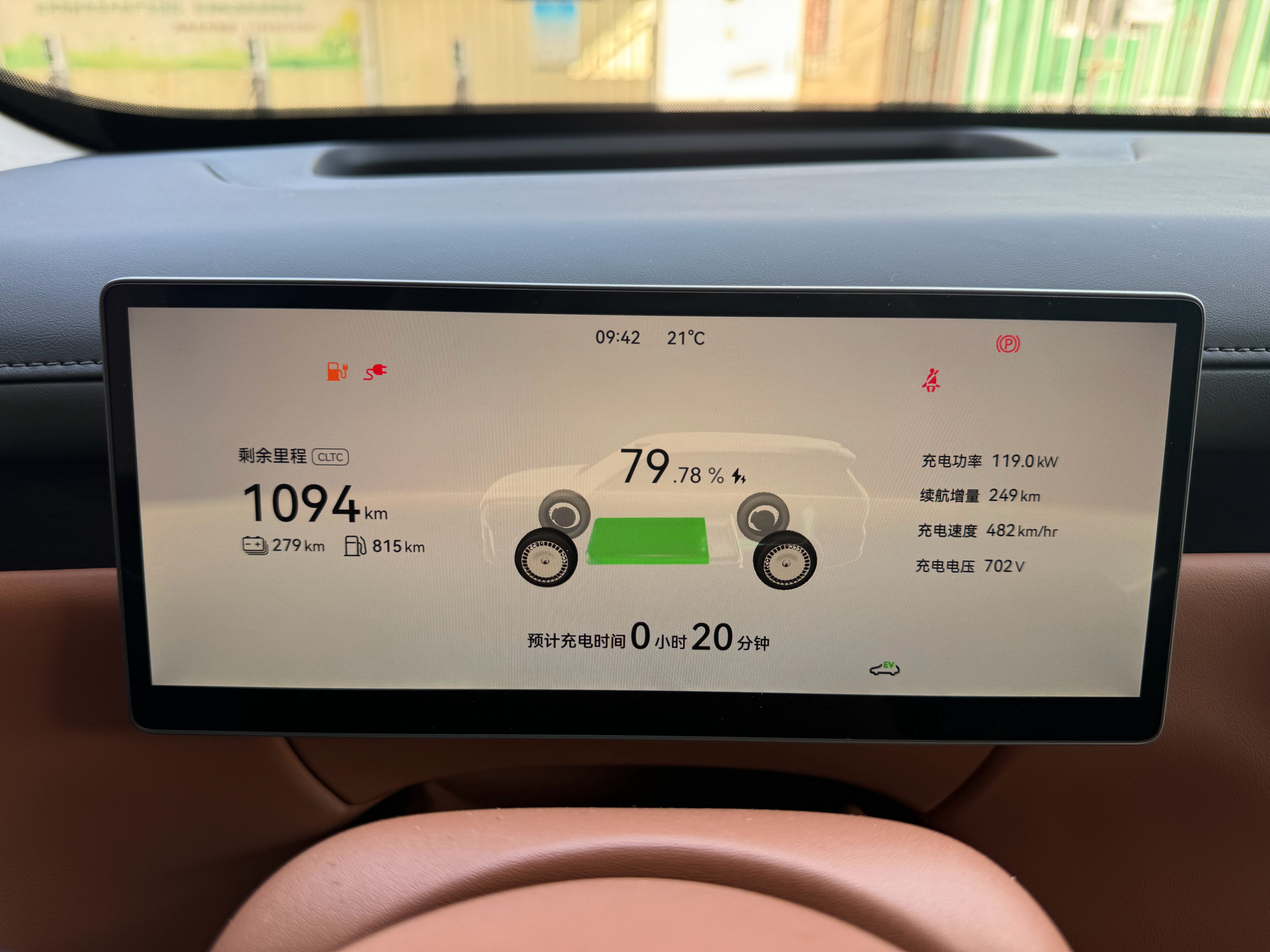 23 分钟从 9% 充到了 80%,纯电续航增加了 249 公里。