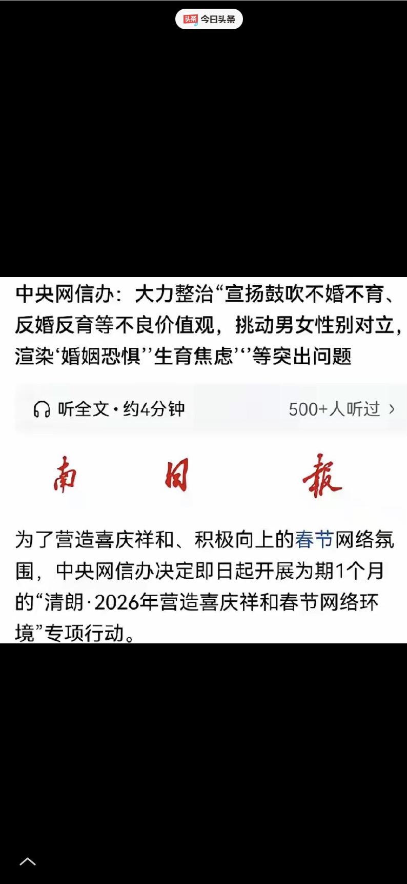 不孝有三,无后为大。国家终于意识到这个如果那种鼓吹不婚不育的歪风,继续扩散对国家和民族带来的伤害。因此,采取果断行动打击这股歪风邪气,真是大快人心。 可能很多人看到这句话会疑惑,难道不婚不育是错的?当然不是,每个人都有选择自己生活方式的权利,自愿单身、丁克,理性表达自己的态度,这是受法律保护的,国家从来不会干涉。 但我们必须分清,个人选择和恶意鼓吹是两回事,现在网络上蔓延的,是一股把不婚不育神化、把结婚生育污名化的歪风,这股歪风已经不是简单的个人观点表达,而是被一批流量贩子利用,变成了收割流量、制造焦虑、撕裂社会的工具,再不整治,只会给国家和民族的未来埋下大隐患。 大家平时刷手机,肯定经常刷到这样的内容:“不婚不育保平安,结婚就是跳进火坑”“生育毁一生,养娃就是无底洞”“已婚人士都是傻子,单身才是人间清醒”。这些话术看似是在替年轻人发声,实则全是断章取义、刻意煽动。 这些自媒体账号根本不关心年轻人的真实困惑,也不关心婚姻生育的本来面貌,他们只在乎播放量和点赞数,惯用的套路就是放大婚姻中的矛盾、生育中的辛苦,截取1%的极端个案,否定99%的普通人的幸福,把两性关系扭曲成互相算计的敌人,把生育责任贬低成毫无意义的付出。 更过分的是,有些账号还会编造虚假故事、用AI生成虚假场景,批量生产焦虑内容,误导那些本来就对婚恋有迷茫的年轻人,让他们慢慢恐惧婚姻、厌恶生育,甚至嘲讽、攻击已婚已育的人群。 或许有人觉得,几句极端话术而已,能有多大危害?但大家看看数据就知道,这股歪风的影响已经实实在在显现出来了。 根据国家统计局的数据,我国的出生率从2018年的10.86‰,一路下降到2023年的6.39‰,到了2025年,出生率更是跌破5.63‰,人口已经连续四年负增长,四年累计减少的人口超过了一千万。 更让人担忧的是,2025年我国的总和生育率只有1.09,远低于维持人口稳定所需的2.1,已经陷入了超低生育率陷阱。 人口是一个国家和民族的根基,年轻人不愿生育,未来的劳动力就会越来越少,老龄化问题会越来越突出,养老、医疗、社保等一系列社会问题都会随之而来,甚至会影响到国家的长远发展和民族的延续。 这不是危言耸听,看看我们的邻国韩国就知道,韩国的生育率长期位居世界倒数,即便政府大幅提高育儿补贴,把1岁以下婴儿的父母每月补贴提高到约5450元人民币,也没能有效扭转低生育率的局面,如今已经面临着劳动力短缺、老龄化加剧的严峻困境,这就是我们必须警惕的前车之鉴。 正是看到了这股歪风的严重危害,国家才果断出手,中央网信办在2026年2月正式启动专项行动,明确将宣扬鼓吹不婚不育、反婚反育等不良价值观,纳入重点整治范围。 这里必须再次澄清,这次整治的不是个人选择,而是那些恶意鼓吹、制造对立、贩卖焦虑的网络乱象,是那些打着“自由”旗号,攻击婚姻、抹黑家庭、误导青少年的极端行为。 简单来说,你可以选择不婚不育,但你不能把自己的选择当成“政治正确”,去强迫别人认同,更不能去伤害那些选择结婚生育的人。 而且国家的行动不只是“堵”,更有“疏”。在打击歪风邪气的同时,国家也在不断完善生育支持政策,切实解决年轻人的实际困难。 2026年,全国范围内已经全面启动育儿补贴申领,3周岁以下婴幼儿家庭每孩每年可以申领3600元;子女教育的个人所得税专项附加扣除标准,也从每个子女每月1000元提高到2000元。 各地还在大力发展社区嵌入式托育服务,降低托育成本,目前全国全日托的平均价格降幅已经达到29%,同时还有4845所二级、三级公立综合医院能提供儿科服务,全方位为生育家庭减负。 这些政策的出台,就是为了让年轻人敢生育、愿生育,让他们知道,生育不是一个人的责任,而是国家和社会共同的责任。 作为主攻国际时事的自媒体,我见过太多国家因为低生育率陷入发展困境,深知人口稳定对一个国家的重要性。国家这次果断打击鼓吹不婚不育的歪风,真是说到了老百姓的心坎里,大快人心。 我们尊重每一种合理的个人选择,也理解年轻人面临的婚恋、生育压力,但我们更要认清,婚姻和生育从来都不是洪水猛兽,它们既有辛苦,也有专属的温暖和幸福。 打击歪风邪气,不是要强迫年轻人结婚生育,而是要净化网络环境,让大家摆脱极端情绪的裹挟,理性看待婚恋和生育,让婚恋观、生育观回归理性。 唯有如此,才能慢慢扭转低生育率的局面,让我们的国家充满活力,让民族的未来更有希望,这才是对国家、对民族,也是对我们每一个人负责。