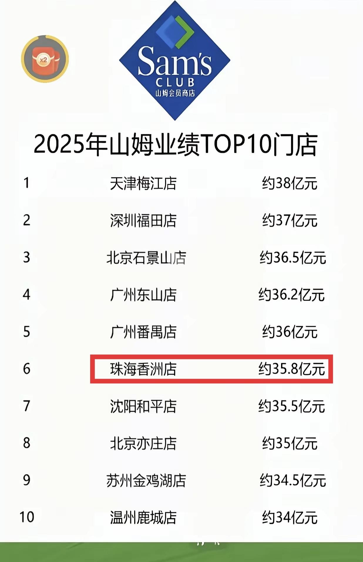 山姆最强门店就是珠海香洲店,不接受反驳。因为其他上榜城市都是上千万人的大城市,只有珠海,全市人口才250万人。这么少的人口,能干到这个销售额真的十分了不起。当然也有一部分澳门人过来买,但是澳门才多少人哦。