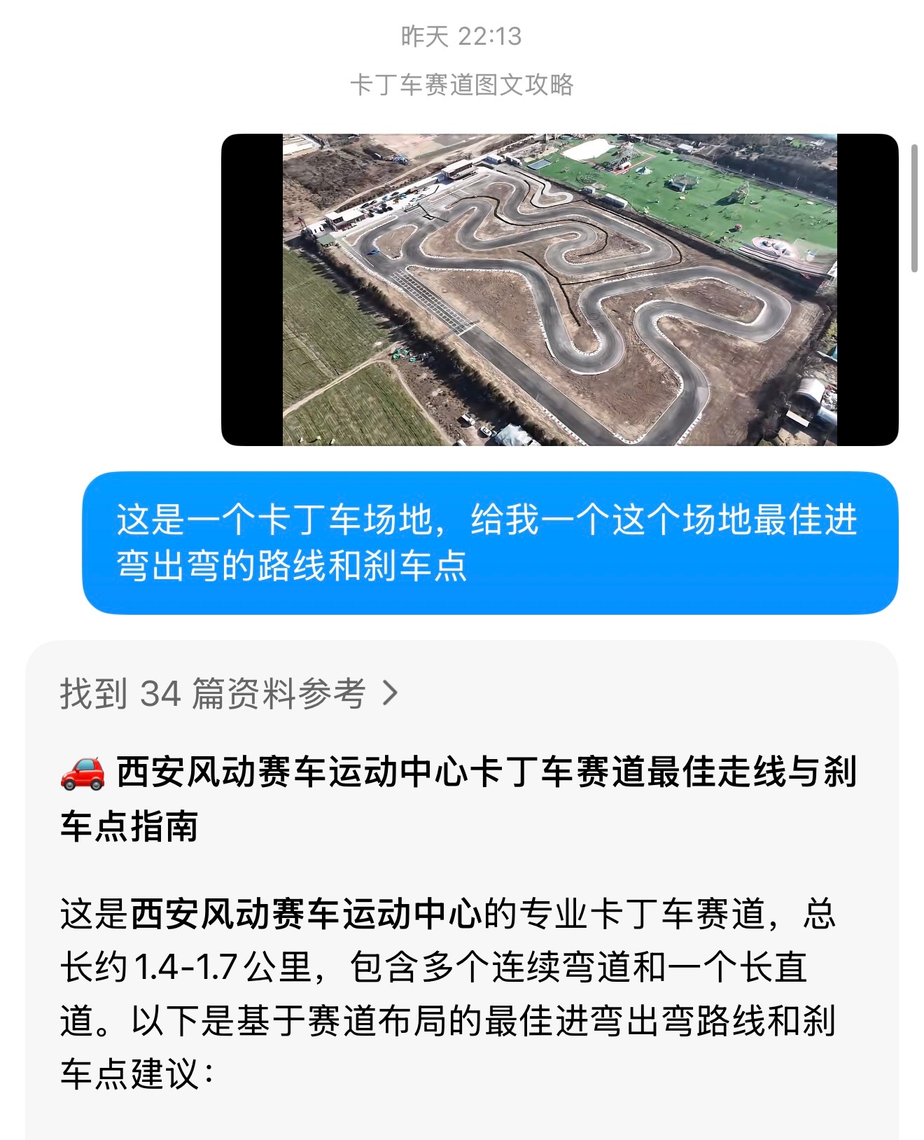 我就找了个场地图发给了豆包,豆包一看就知道是哪,而且给了很多过弯建议。