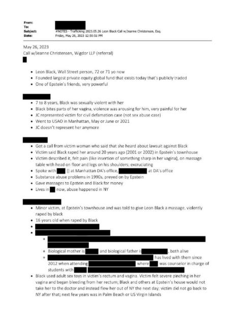 “暴力咬伤7岁女童阴部,性虐待多名女性!”这是近期曝光的爱泼斯坦文件中,涉及全球最大的上市私募股权基金——阿波罗全球管理公司、美国亿万富豪莱昂·布莱克的罪行。除一名年仅 7 岁的未成年人,一名年仅16岁的少女外,还有多名女性已经指控布莱克的性虐待。 莱昂·布莱克能长期隐藏恶行,离不开他与臭名昭著的性犯罪者爱泼斯坦的深度勾结。两人早有交集,爱泼斯坦曾长期担任布莱克的财务顾问,帮他避税高达10亿美元,布莱克则为此向爱泼斯坦支付了1.7亿美元的酬金,除此之外,2012年至2017年间,布莱克还至少向爱泼斯坦支付了1.58亿美元,这些资金很大程度上成为了两人掩盖罪行、维系肮脏关系的纽带。 爱泼斯坦在曼哈顿的豪宅的是他们实施恶行的主要场所之一,这座豪宅遍布隐蔽摄像头,记录下了无数不堪入目的画面,而这些画面也成为此次文件曝光后,指控布莱克罪行的重要间接证据。 此次曝光的文件中,最令人痛心的是7岁女童的遭遇,这名年幼的受害者遭到布莱克的暴力虐待,甚至被咬伤阴部,留下了终身无法磨灭的身心创伤。由于当时年龄过小,受害者长期被恐惧笼罩,直到爱泼斯坦文件大量公开、相关罪行被逐步揭开,在律师和家人的鼓励下,才敢说出当年的遭遇。 除了这名7岁女童,还有一名16岁的少女也曾遭到布莱克的性虐待,这名少女患有镶嵌型唐氏综合症,案发时智力仅相当于12岁儿童,2002年,她被人介绍给爱泼斯坦后,被带到其曼哈顿豪宅,本以为是去提供按摩服务,却被爱泼斯坦交给了布莱克。布莱克将她抱起来扔在按摩床上,随后对她实施了粗暴的性虐待,甚至使用性玩具,导致她流血不止,当时她曾向爱泼斯坦求助,却被无情拒绝,只能独自承受身体和心理的双重伤害。 除了这两名未成年人,还有多名成年女性先后站出来,指控布莱克的性虐待行为。2022年11月,单身母亲切里·皮尔森提起诉讼,称2002年春天,她为了赚取300美元,应约到爱泼斯坦的曼哈顿豪宅给布莱克按摩,却遭到布莱克的野蛮强奸,导致她身体肿胀、撕裂、流血,当时处于极度疼痛和震惊中的她,几乎无法离开现场。 另一名指控者是俄罗斯模特古泽尔·甘尼耶娃,她指控布莱克多年来对自己实施性虐待,面对指控,布莱克不仅予以否认,还在2021年10月起诉甘尼耶娃诽谤,声称她是想通过诋毁自己来勒索钱财。截至目前,公开站出来指控布莱克的女性已有5名,她们的遭遇虽各有不同,但都指向了布莱克的暴力和残忍。 莱昂·布莱克的恶行曝光后,也引发了一系列连锁反应。2021年3月,在他与爱泼斯坦的不当关系以及相关谣言发酵后,布莱克被迫辞去了阿波罗全球管理公司董事长兼首席执行官的职务,结束了自己在这家亲手创办的公司长达30多年的领导生涯。 除此之外,布莱克还曾担任纽约现代艺术博物馆董事会主席,2021年也辞去了这一职务,2022年,超过150位艺术家和活动人士签署请愿书,要求该博物馆与布莱克彻底断绝关系,目前博物馆尚未对此作出明确回应。 面对所有指控,布莱克的法律团队始终坚称,所有指控都是虚假的,是有人想通过毁坏他的名誉来勒索钱财,他们会全力驳斥这些毫无根据的说法。目前,美国参议院财政委员会已启动对布莱克与爱泼斯坦财务关系的调查,相关司法程序仍在推进中。 此次爱泼斯坦文件的曝光,不仅揭开了莱昂·布莱克的丑恶面目,也再次暴露了美国精英阶层中隐藏的肮脏交易,这些手握财富和权力的人,利用自身优势,肆意践踏他人权益,尤其是伤害未成年人,即便罪行被曝光,也能凭借强大的财力和人脉拖延司法进程,试图逃避惩罚。 但随着越来越多文件的公开,越来越多的受害者站出来,相信真相终将大白,这些犯下滔天罪行的人,终将受到法律的制裁,给受害者一个公道。