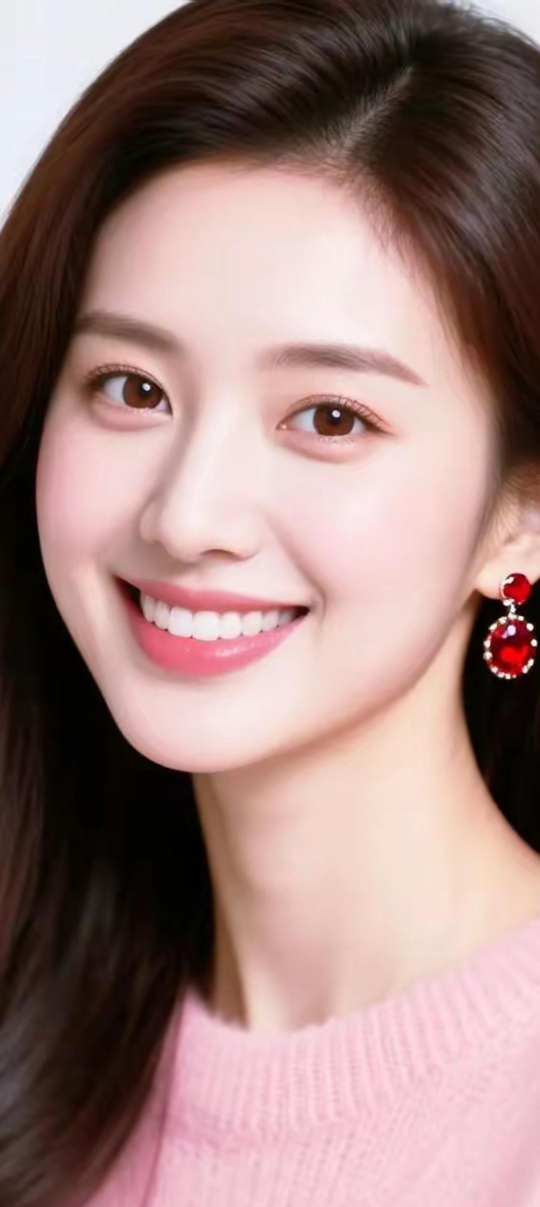 甜美笑容,红宝石耳环,粉色毛衣,元气满满的一天!😊✨