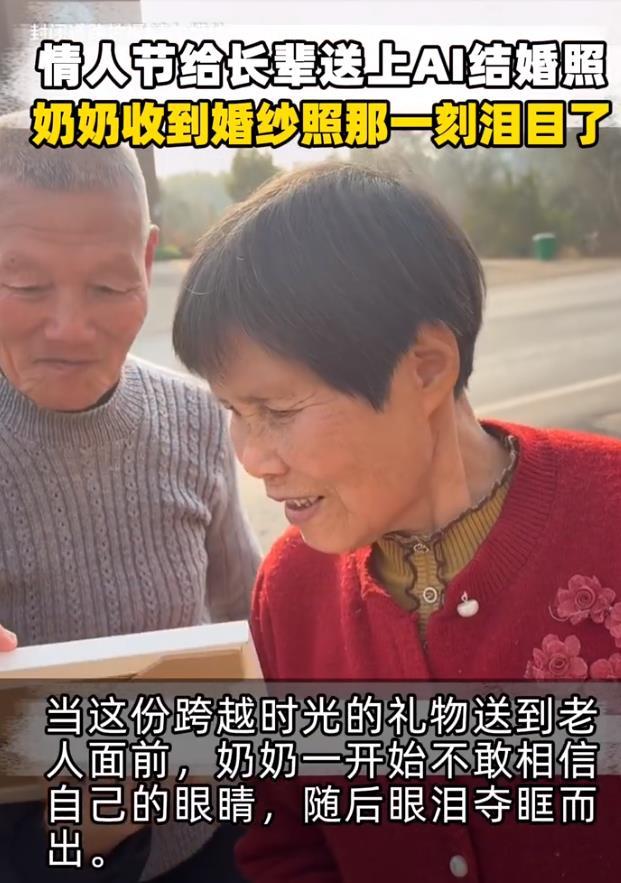 情人节给长辈送上AI结婚照一张泛黄老照片,经AI之手变作迟到50年的婚纱照。当奶奶笑着说“开心”,我们看见的不仅是技术的魔力,更是两代人的情感接力——他们曾把浪漫藏进时代褶皱里,我们用AI把褶皱里的遗憾熨平。最好的科技,就是让爱终于能被看见。奶奶收到婚纱照那一刻泪目了