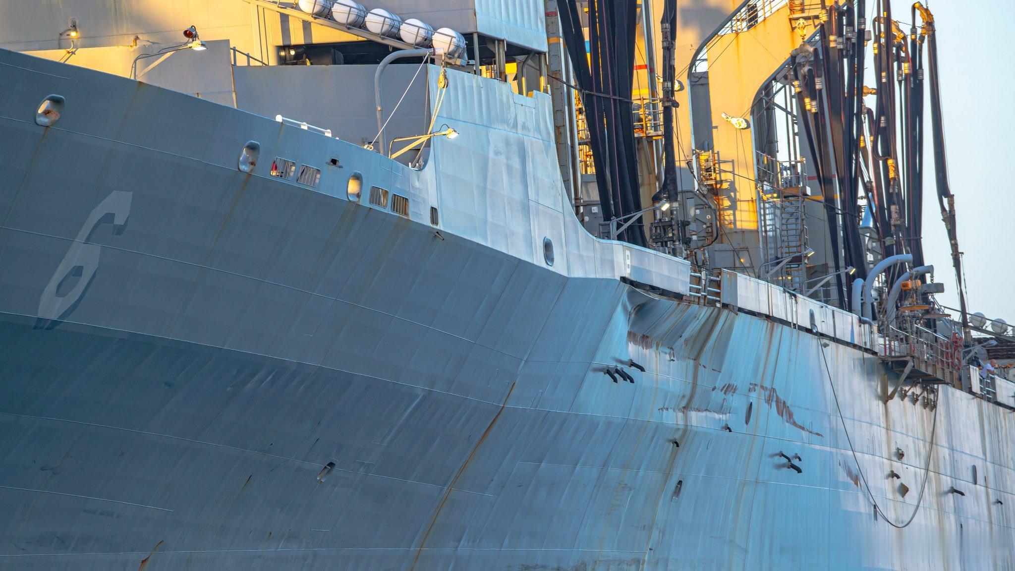 飞扬军事 2026年2月13日,停靠在波多黎各蓬塞港的美国海军供应号补给舰舰与特鲁克斯顿号驱逐舰,可以明显看到两船相撞后留下的痕迹烽火问鼎计划